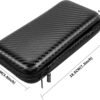 Un exemple de produit est un étui de transport antichoc en EVA, conçu pour protéger les disques durs externes portables HDD/SSD de 2,5″. Il est équipé d’une double fermeture éclair et d’un matériau rigide pour résister aux chocs. L’étui dispose également de poches en filet pour stocker les câbles et les accessoires électroniques.
