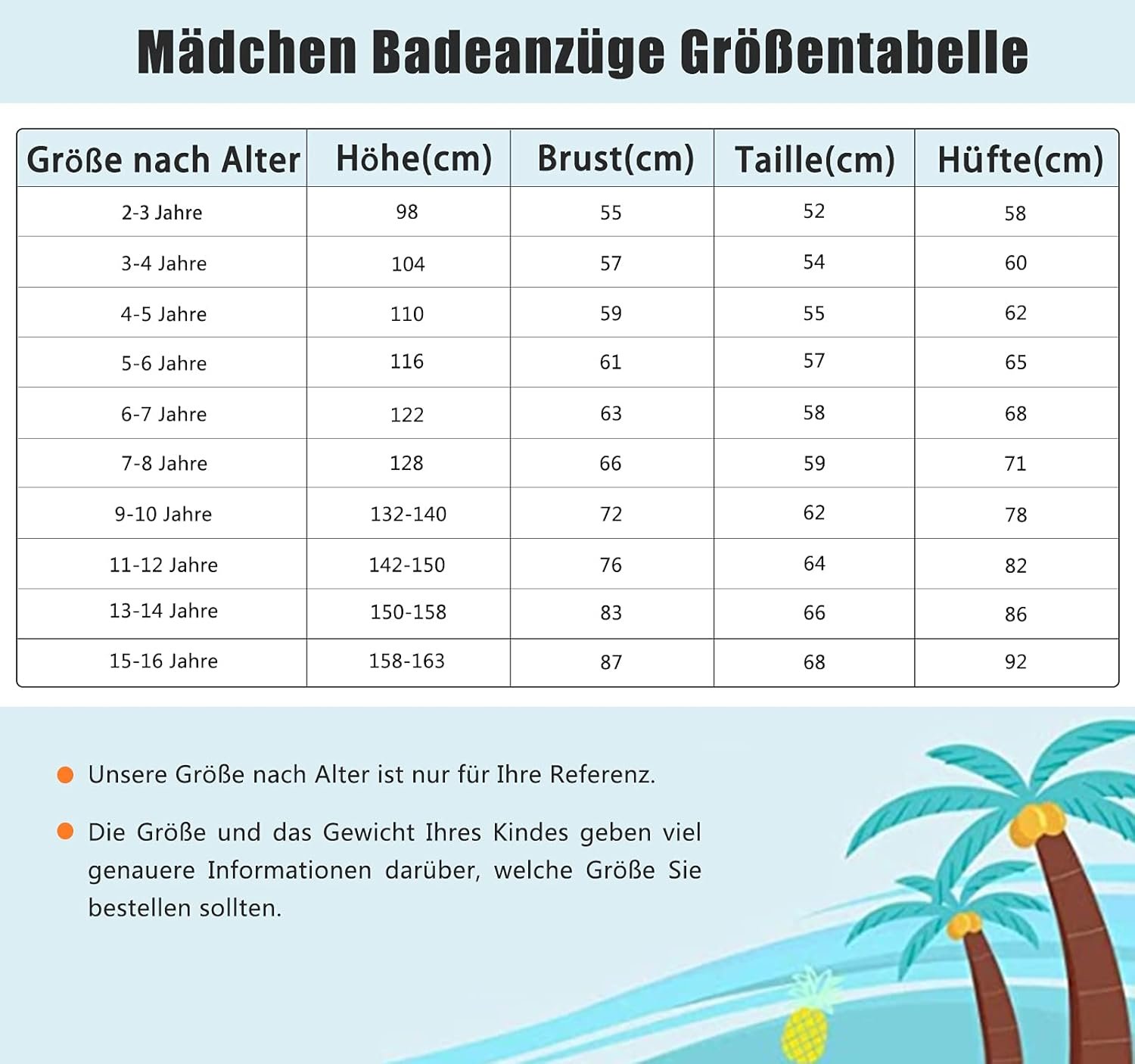 Aisyee Maillot de bain 2 pièces pour fille – Motif floral – Pour fille de 3 à 16 ans