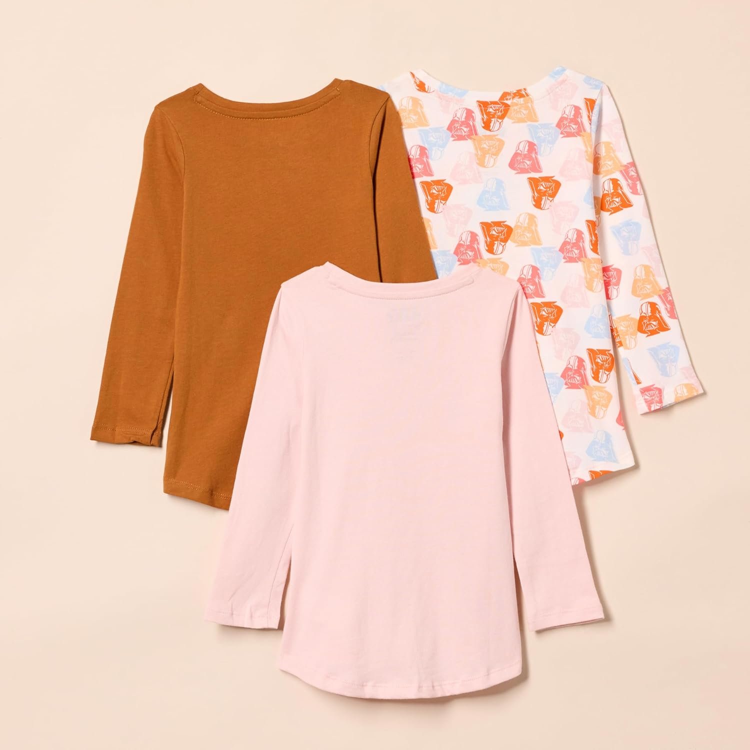 Amazon Essentials Disney | Marvel | Star Wars | Frozen | Princess T-Shirts Tuniques à Manches Longues Fille, Lot de 3