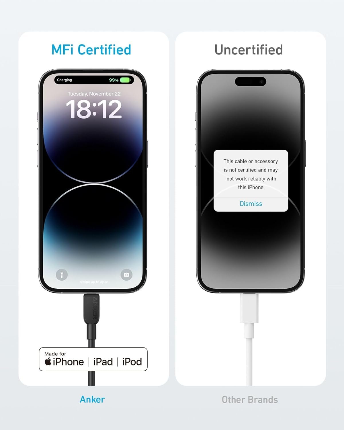 Certifié MFi : conçu pour fonctionner de manière transparente avec n’importe quel appareil Lightning.