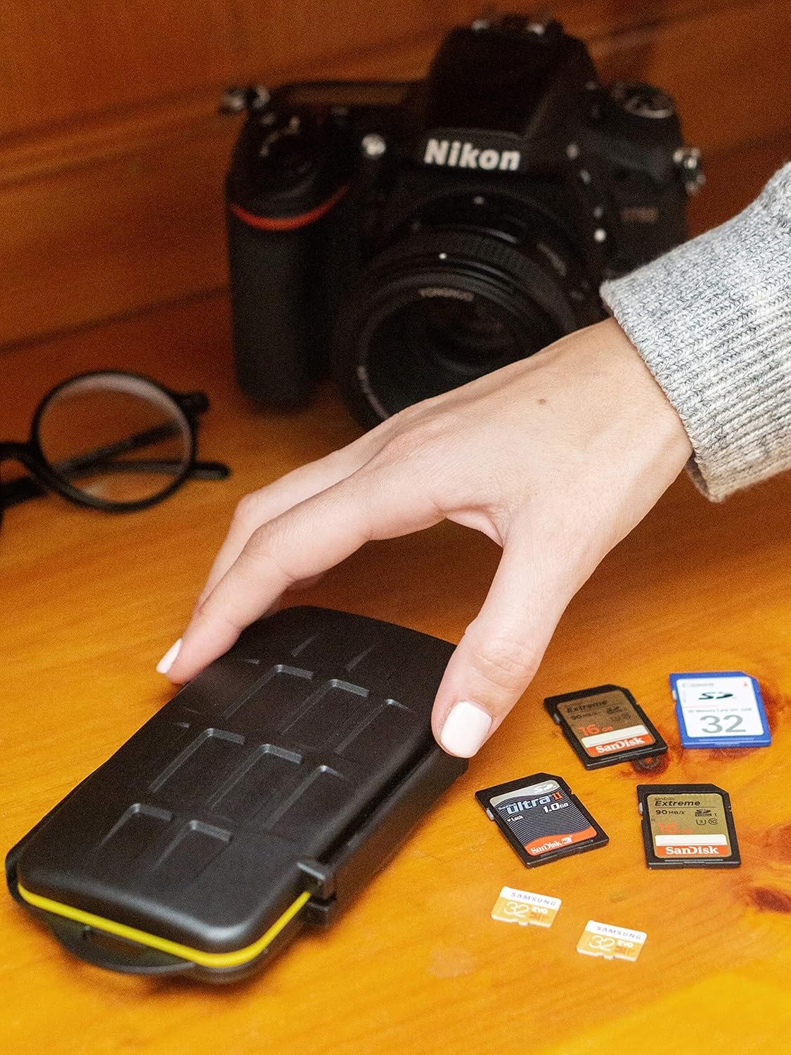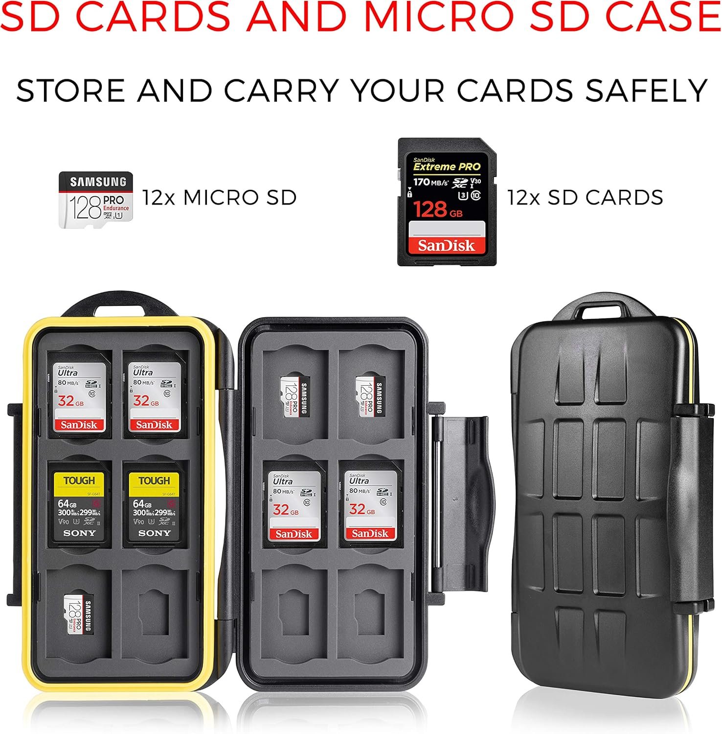 Ce boîtier de stockage pour cartes mémoire est conçu pour protéger vos cartes SD et microSD contre les chocs et l’eau. Il est fabriqué avec un matériau robuste et résistant aux chocs, et comporte des inserts en caoutchouc pour absorber les impacts. Le boîtier peut contenir jusqu’à 12 cartes SD et 12 cartes microSD, avec des emplacementsStrictement conçus pour chaque type de carte. Un joint en caoutchouc empêche la saleté et l’eau de pénétrer dans le boîtier, tandis qu’une fermeture à pression praktique et un œillet pour la fixation d’une dragonne facilitent son utilisation. Les dimensions du boîtier sont d’environ 11,5 x 8 x 1,5 cm, et il pèse environ 125 g. Il est idéal pour transporter et stocker en toute sécurité vos cartes mémoire.