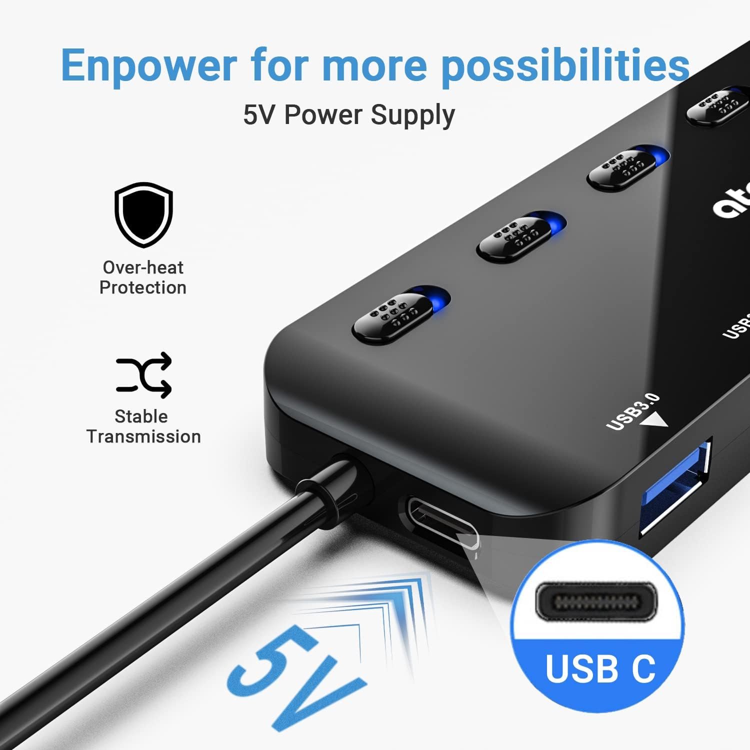 - Connexion multiple : connectez jusqu’à 7 périphériques USB à un seul port