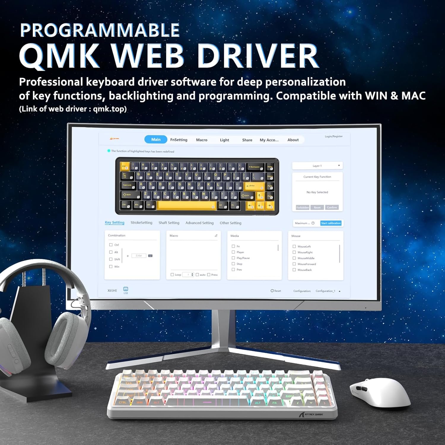 Ce clavier est équipé de keycaps en PBT résistants à l’huile et d’un rétroéclairage RGB de qualité supérieure, offrant une sensation haut de gamme et une durabilité accrue. Le pilote web QMK permet une personnalisation approfondie des touches, des macros et des effets lumineux. Avec ses caractéristiques avancées, le X65 HE est l’outil ultime pour les gamers professionnels.