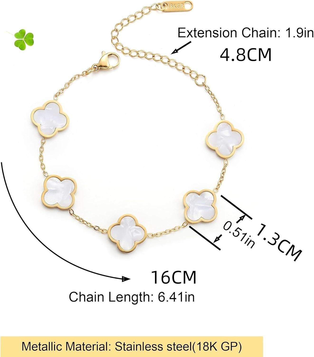Notre magnifique bracelet trèfle à quatre feuilles est l’accessoire parfait pour ajouter une touche de bonheur et d’élégance à n’importe quelle tenue. Ce bijou intemporel est idéal pour des occasions spéciales ou comme porte-bonheur quotidien. Fabriqué en acier inoxydable de qualité supérieure et plaqué or véritable 18 carats, le bracelet offre une beauté hypoallergénique et durable, sans danger pour les peaux sensibles. Offrez-vous ou à vos proches ce symbole de bonheur et d’amour et apportez du style au quotidien.