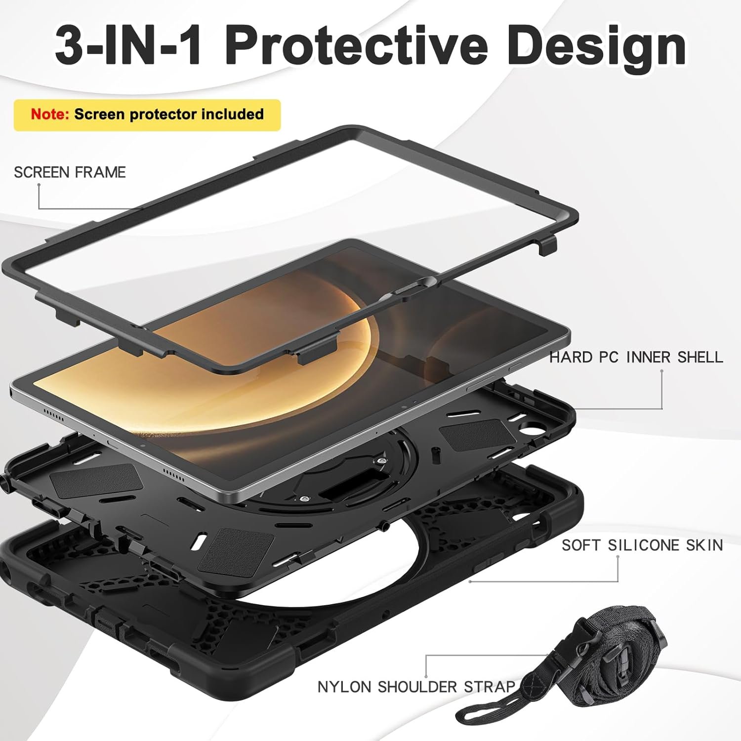 La coque de la tablette Samsung Galaxy Tab A9+ Plus 11 Pouces 2023 est conçue pour offrir une protection complète. Elle est compatible uniquement avec les modèles SM-X210/SM-X216/SM-X218. La coque est équipée d’un protecteur d’écran pour une protection supplémentaire.