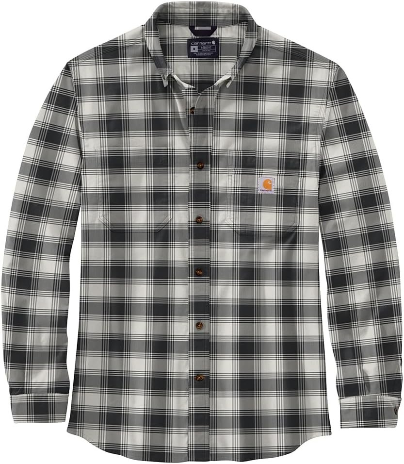 Ce vêtement est composé de 97 % de coton et de 3 % de flanelle élasthanne, ce qui lui confère une texture douce et stretch. Il est réalisé avec la technologie Rugged Flex Stretch et présente une coupe décontractée. Les poignets sont réglables avec deux boutons et les poches poitrine ont un rabat. La longueur plus courte permet un port plongeant ou étouffé.