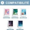 Accessoires Complets et Excellent Service Client: 1 x iPad 6/5 eme generation/pro 9.7/Air 2/Air 1 9.7″ étui , 1 x iPad 6/5 eme generation/pro 9.7/Air 2/Air 1 9.7″ clavier, 1 x câble de recharge type c, 1 x mode d’emploi. De plus, si vous avez des questions sur le modèle ou la fonction de notre coque clavier Bluetooth sans fil,vous rencontrez des problèmes avec nos produits (tels que le clavier ne fonctionne pas), veuillez nous contacter et nous vous fournirons une solution satisfaisante. in French, in 200 words or less.