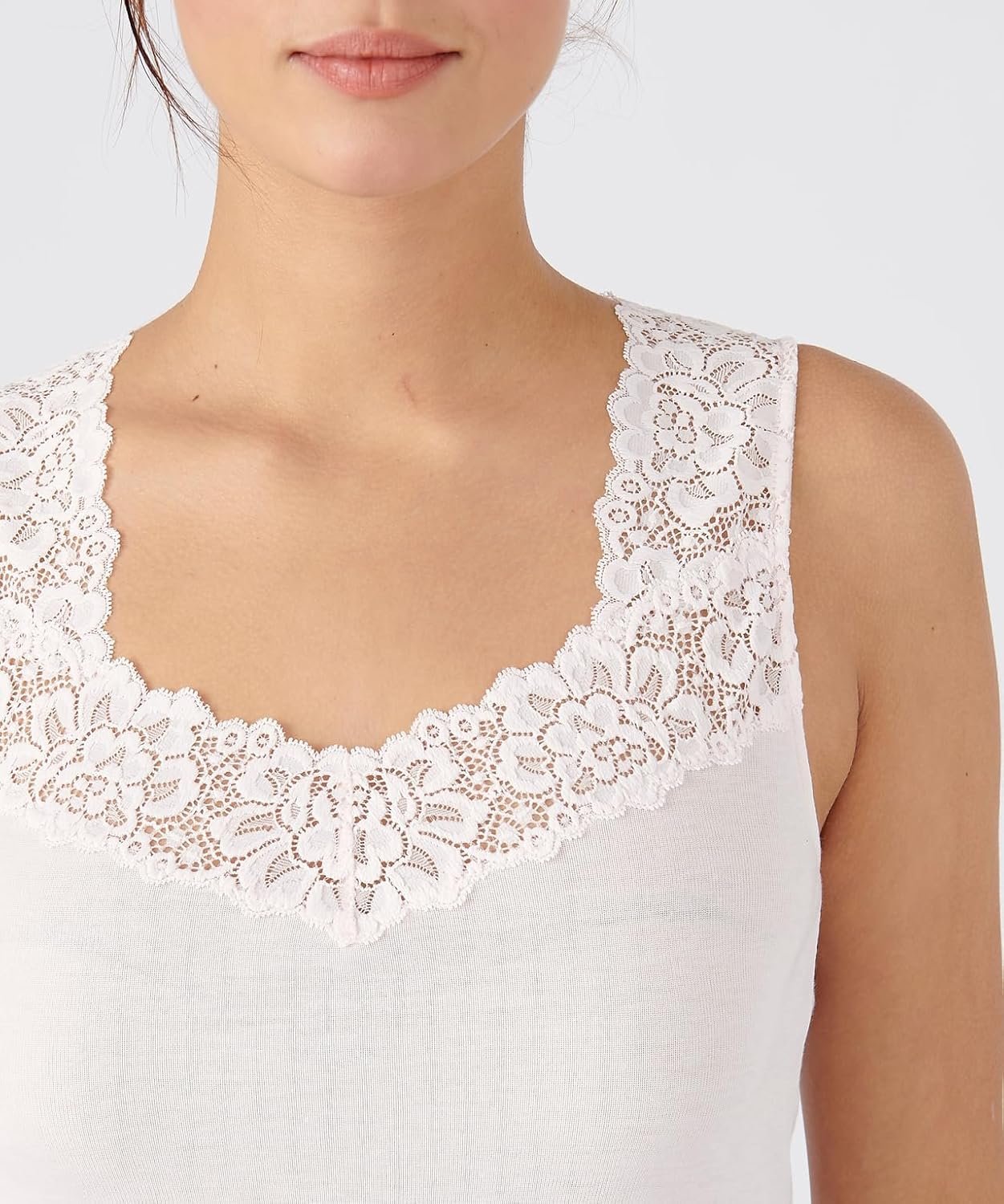 Ce débardeur en viscose est parfait pour ajouter une touche de féminité à votre tenue. Porté sous une veste, il offre une chaleur douce et confortable. La dentelle extensible au décolleté ajoute un détail élégant. Conçu pour absorber l’humidité corporelle, il est idéal pour une journée à la mi-saison. Vous pouvez également le porter comme sous-vêtement pour un look décontracté à la maison.