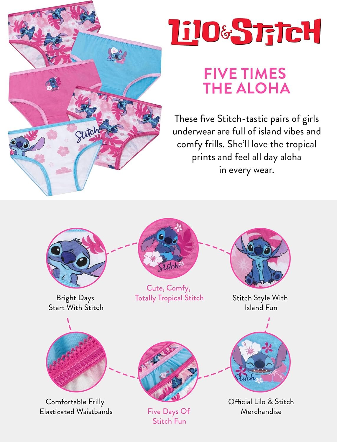 Disney Lilo & Stitch sous-Vêtements, Lot De 5 Shorty Fille, Lilo Et Stitch Culottes Fille