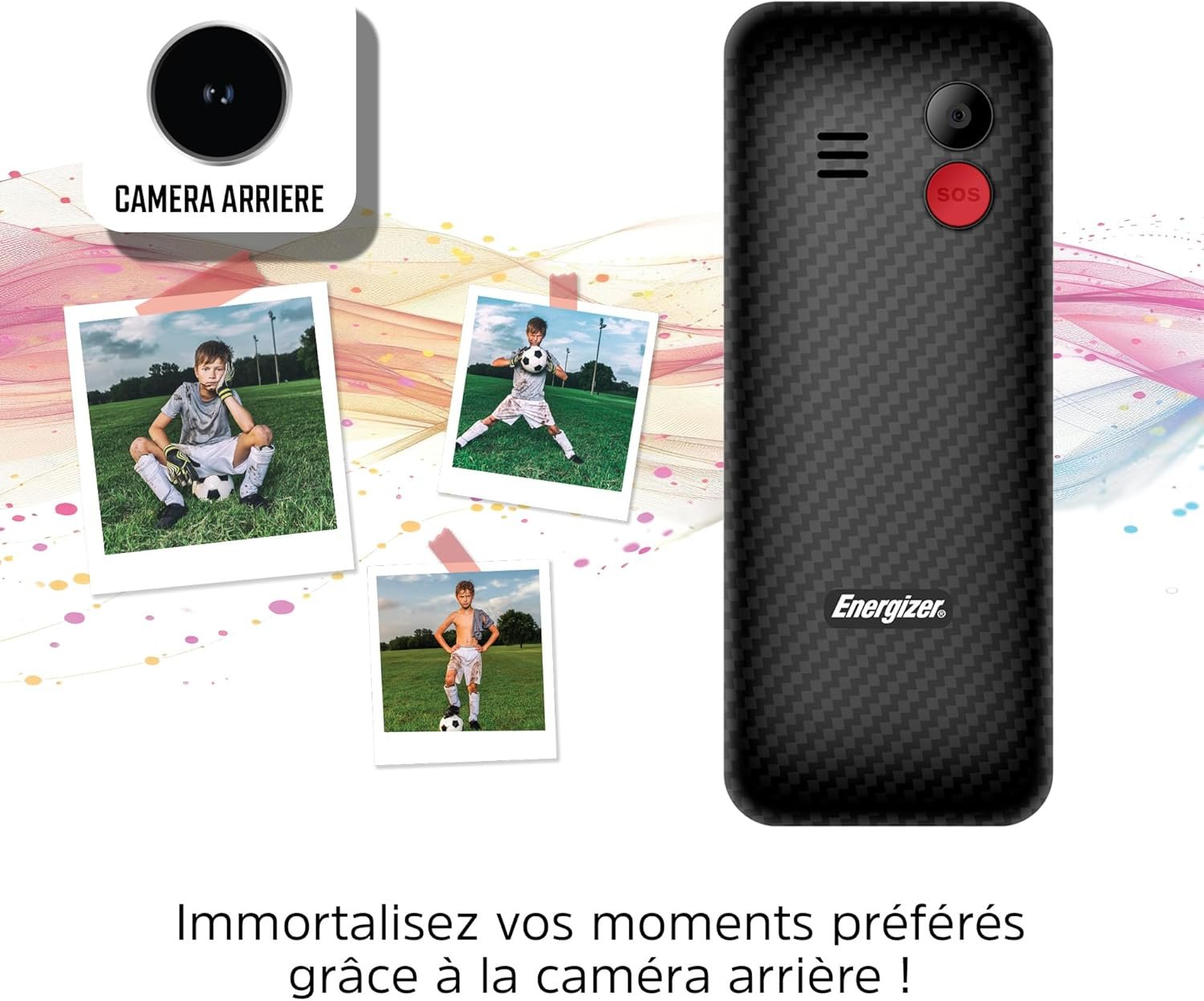 TELEPHONE ENERGIZER SIMPLE ET EFFICACE : Le téléphone Energizer E4 offre l’ergonomie et la facilité d’utilisation d’un téléphone à touches classique tout en proposant des fonctions utiles pour profiter des moments qui comptent. C’est le téléphone idéal pour les personnes âgées, les enfants, les débutants ou les personnes qui souhaitent uniquement écrire et recevoir des messages. FONCTION SPECIALE SOS : Grâce au bouton SOS, vos proches sont automatiquement alertés par SMS et/ou appel. Vous pouvez programmez jusqu’à 5 contacts en cas d’urgence puis appuyez sur le bouton rouge SOS pour déclencher l’appel. Vos contacts seront joints dans l’ordre d’enregistrement. TELEPHONE SIMPLE ET PRATIQUE : Avec sa batterie de 1000 mAh, le téléphone Sénior E4 offre une autonomie en veille de plus de 160 heures. Il est parfait pour parler, envoyer des SMS pendant des heures. Soyez joignable à tout instant. CLAVIER ARABE ALPHANUMÉRIQUE : Conservant le clavier traditionnel des téléphones classiques ainsi que leur look vintage et classe, ce modèle de téléphone possède un clavier alphanumérique ultra-pratique. LAMPE TORCHE : Votre mobile sera se rendre utile grâce à sa lampe de poche intégrée. Une torche LED puissante pour ne rien rater de jour comme de nuit.