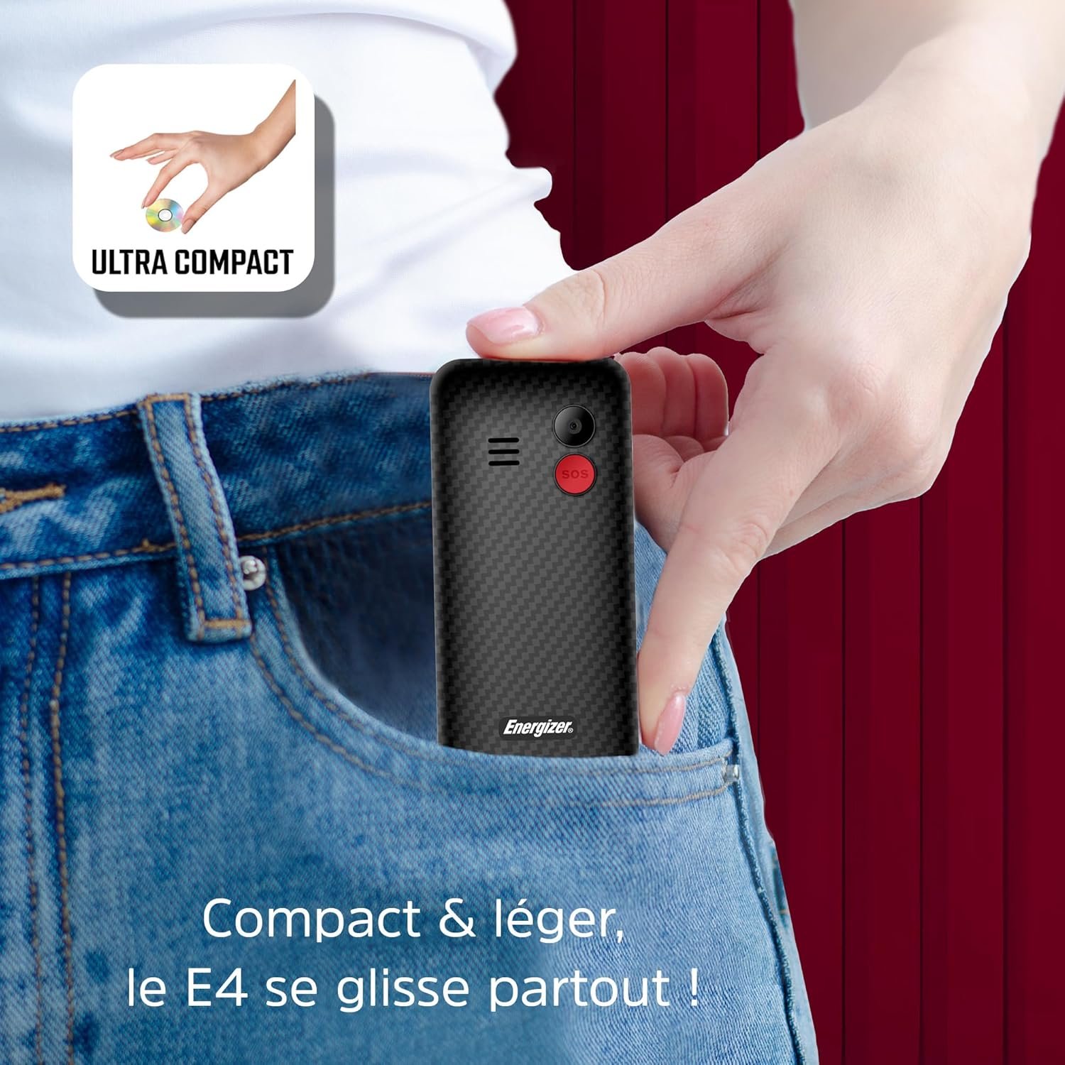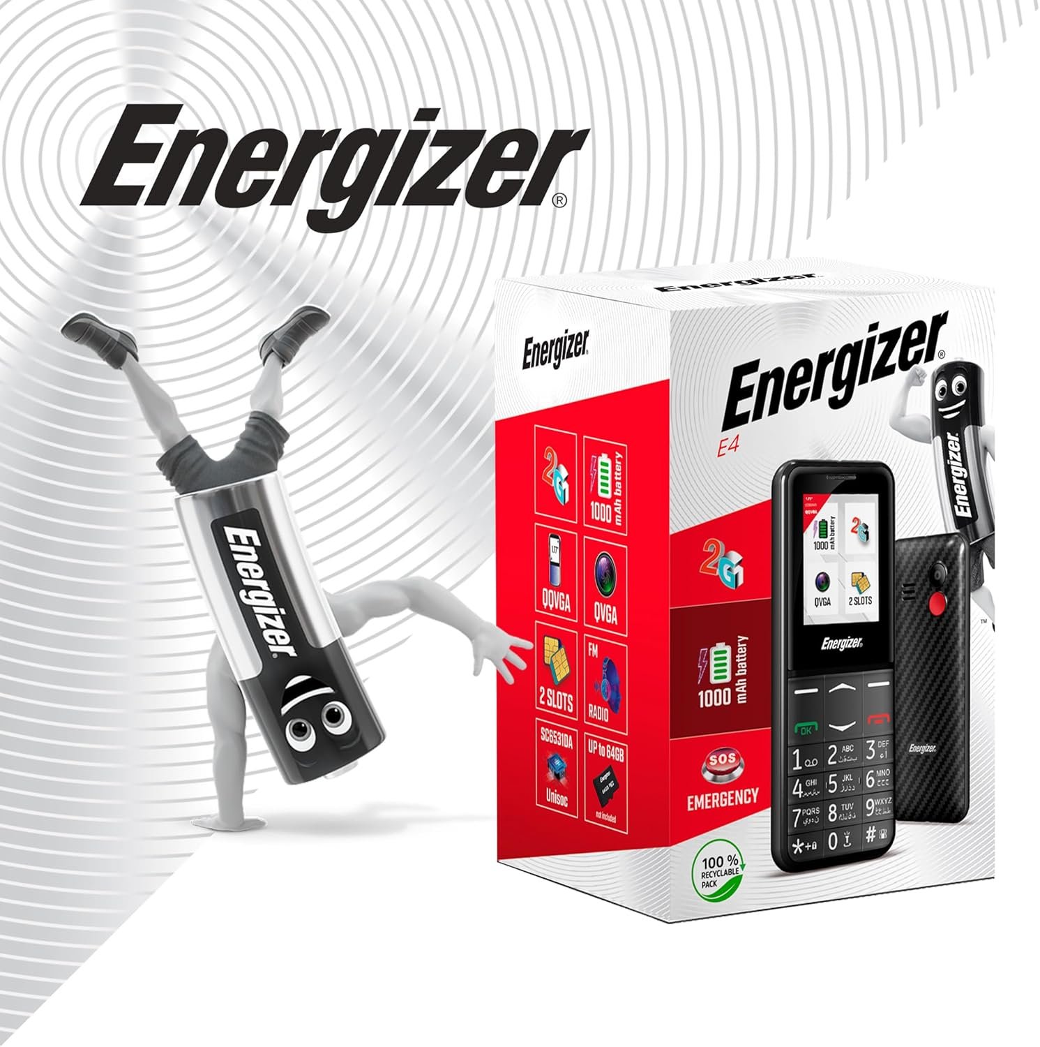 Energizer – Mobile E4 – Téléphone Senior Débloqué 2G – Bouton SOS – Batterie 1000 mAh – Clavier à Touches AR – Double Sim – Torche – Chargeur UK