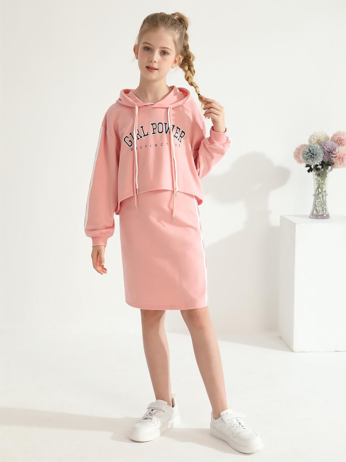 ESHOO Tenue 2 pièces pour filles – Pull à capuche – Haut caraco – Robe moulante et sweat à capuche – Pour l’automne et l’hiver