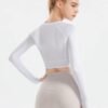 Cette chemise de fitness pour femme présente un design innovant avec des manches longues et un trou pour le pouce, offrant ainsi une grande liberté de mouvement. Conçue à 92 % de polyester et 8 % d’élasthanne, elle est à la fois extensible et confortable. Le tissu est super doux et évacue l’humidité, ce qui la rend idéale pour les activités sportives telles que le yoga, la course à pied et l’exercice.