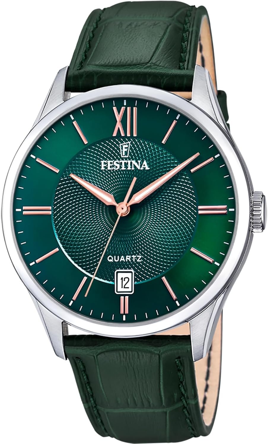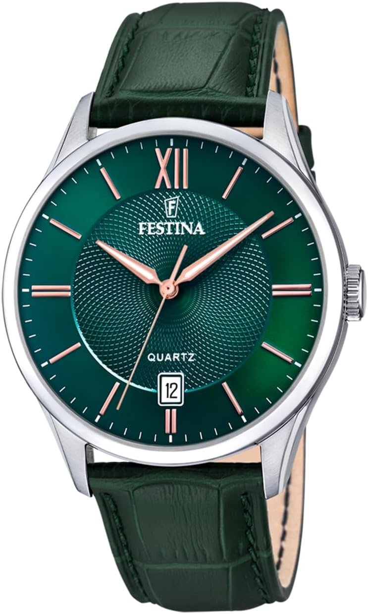 Festina Montre Homme Analogique en Cuir Vert – Mouvement Quartz – Calendrier – Verre Minéral Haute Résistance – Étanche 5 ATM – Élégante et Classique F20426/7