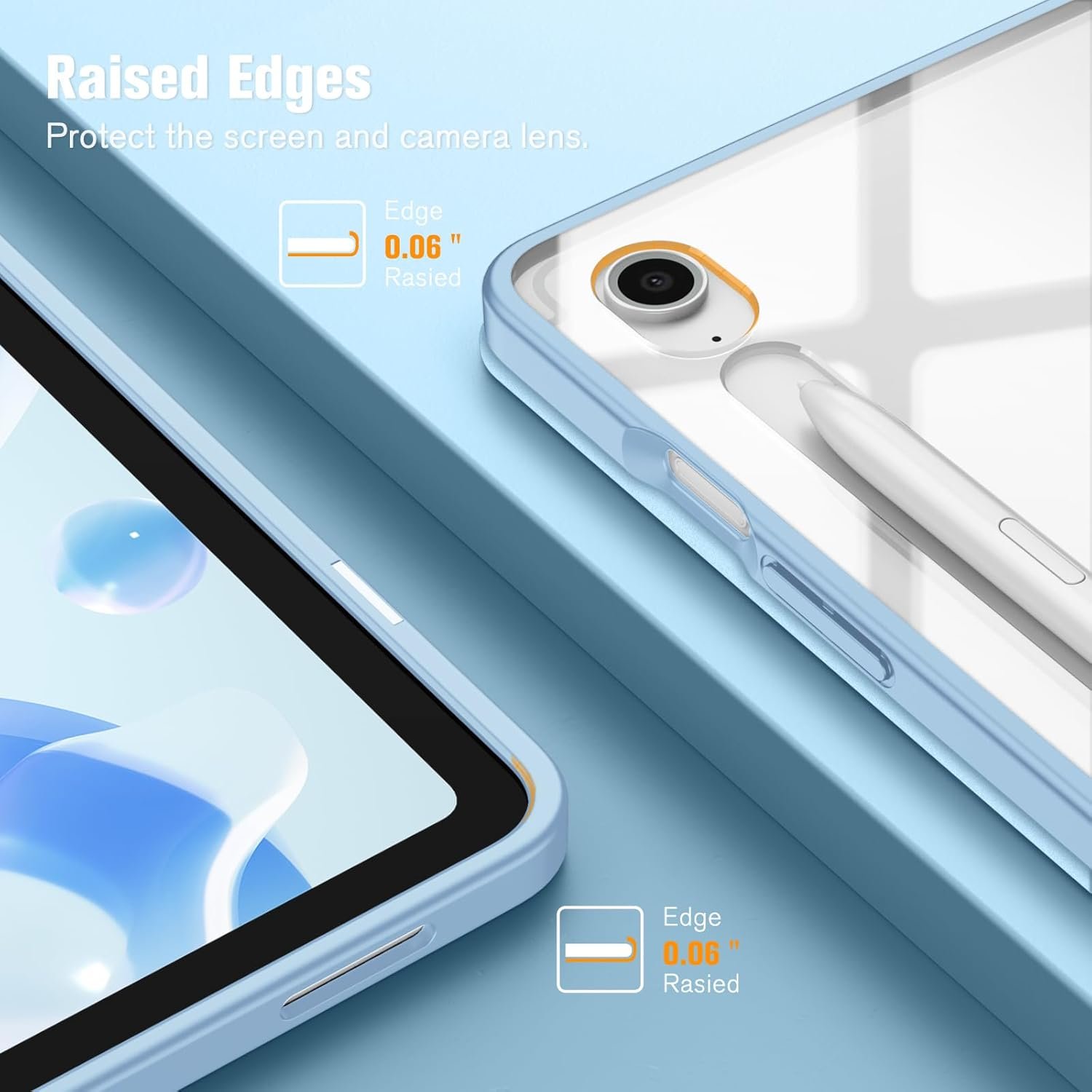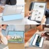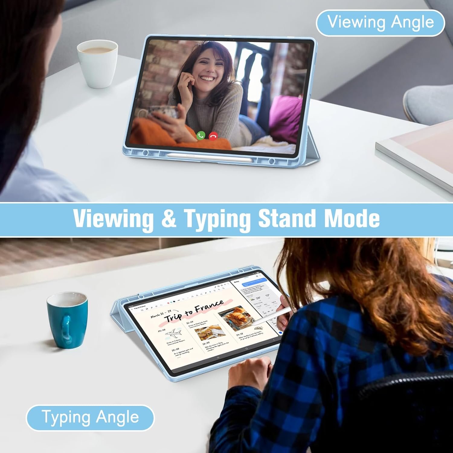 Etui avant à rabat pliable peut supporter la tablette en deux positions debout, et coque arrirère transparente claire. Bord en matériau TPU contre les chocs.