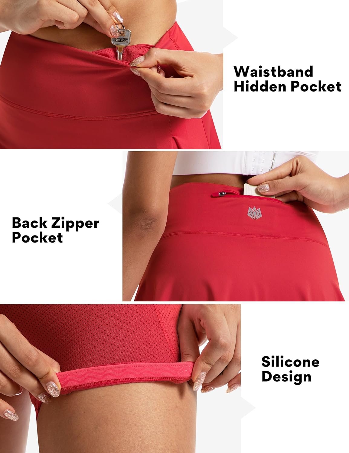 Une jupe de tennis plissée double couche est proposée pour les activités de golf, de fitness, de randonnée et de sport. Elle fait partie de la collection de vêtements de sport pour femmes. La jupe est également assimilable à une tunique de sport pour femme, et peut être comparée à un pantalon de randonnée d’extérieur pour femme.
