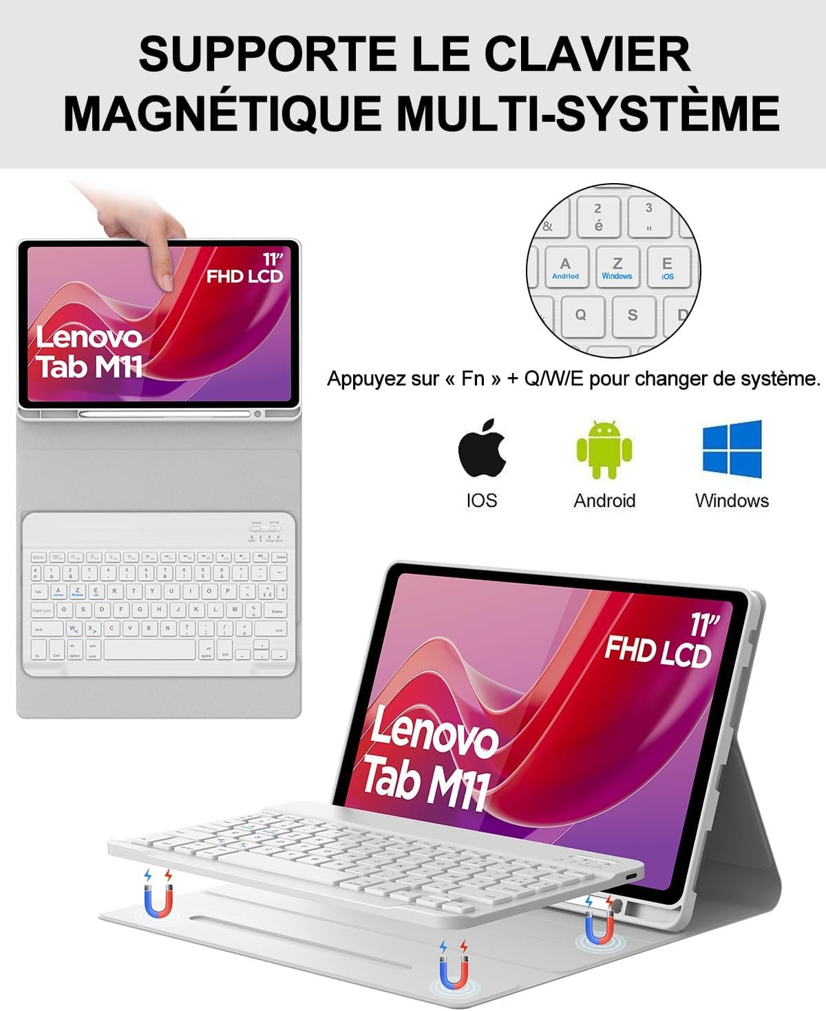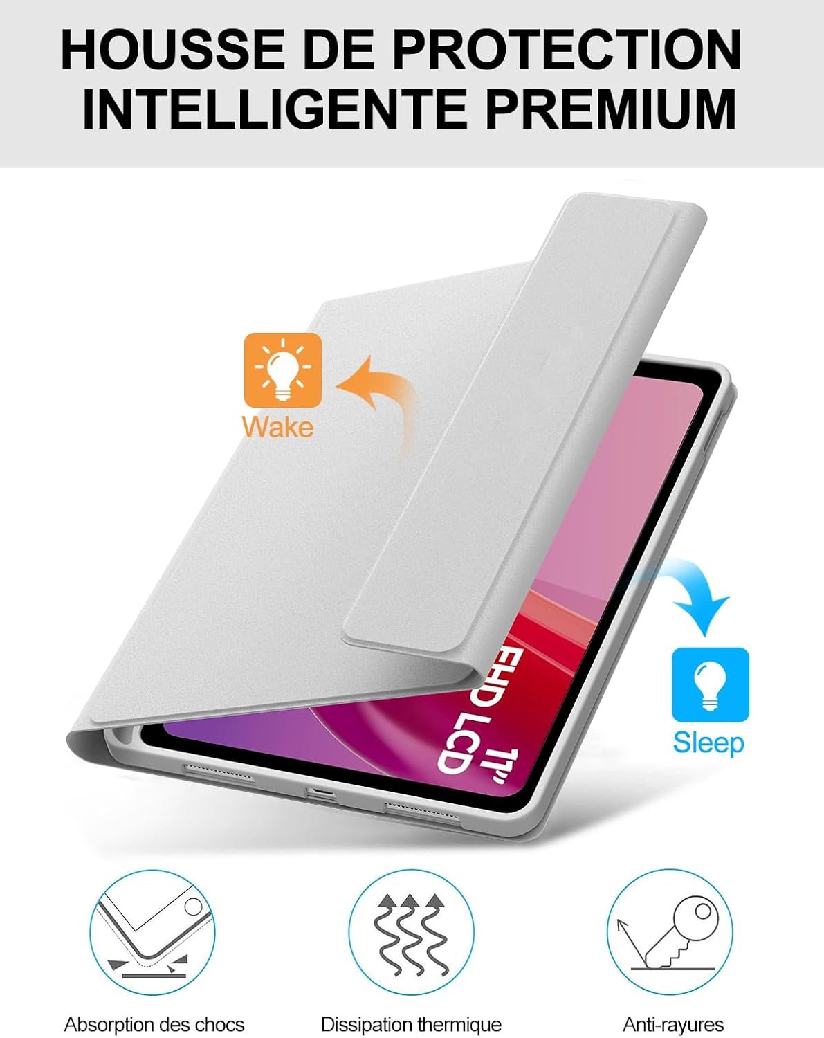 FOGARI Clavier pour Lenovo Tab M11 11” 2024, AZERTY Français Clavier Bluetooth sans Fil, Intelligent Housse pour Lenovo Tab M11 Tablette TB-330XU/330FU – Gris