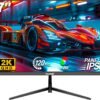 Gawfolk Moniteur de Jeu 27 Pouces QHD, écran PC IPS 2K 120Hz, 2560×1440P, FreeSync, HDMI, DisplayPort, VESA 75 * 75mm, Noir