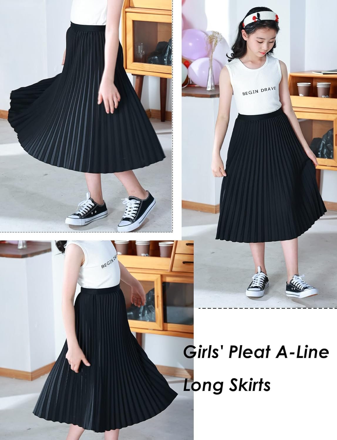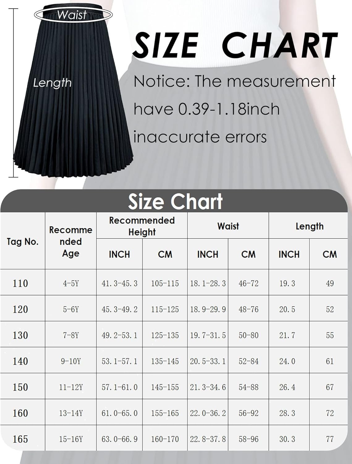 Découvrez nos jupes longues trapèze plissées pour filles, disponibles en plusieurs couleurs, dont le rose, le bleu marine, le noir, le vert menthe et la lavande. Ces jupes sont conçues pour les filles de 4 à 16 ans et sont caractérisées par leurs plis délicats et leurs doublures douces. Les mesures sont indiquées en pouces et en centimètres pour garantir une taille parfaite.