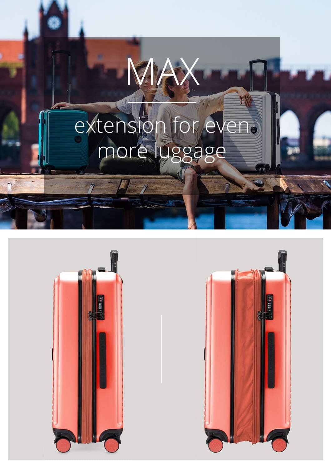 - Volume augmentable : Grâce à une extension de 8 cm, la capacité atteint max. 88 litres.
