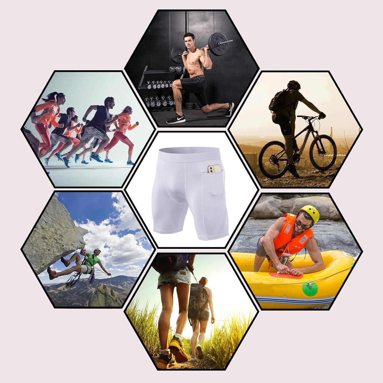 Homme Short de Compression Collants de Course avec Poche, Séchage Rapide Shorts de Sport Running Cycliste Leggings