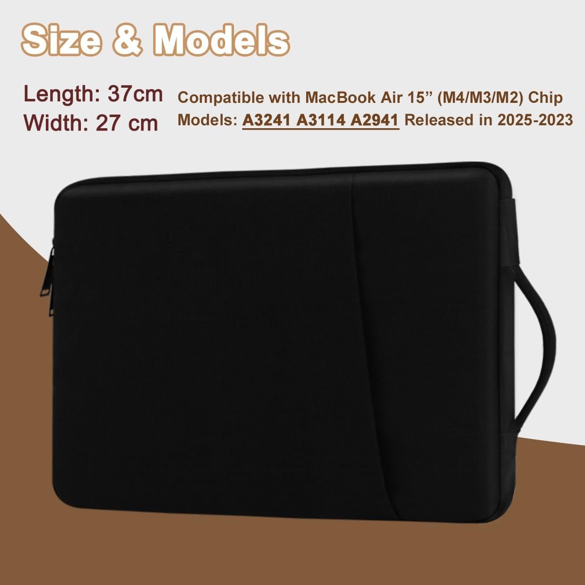 Compatible with MacBook Air 15.3 “chip M4 M3 M2 and A3241 A3114 A2941- released in 2023-2025. Vérifiez la taille de votre ordinateur portable (non compatible avec le Dell XPS et le Samsung Book 15) avant de l’acheter. Dimensions: 37 x 27 x 3 cm (longueur X largeur x hauteur)