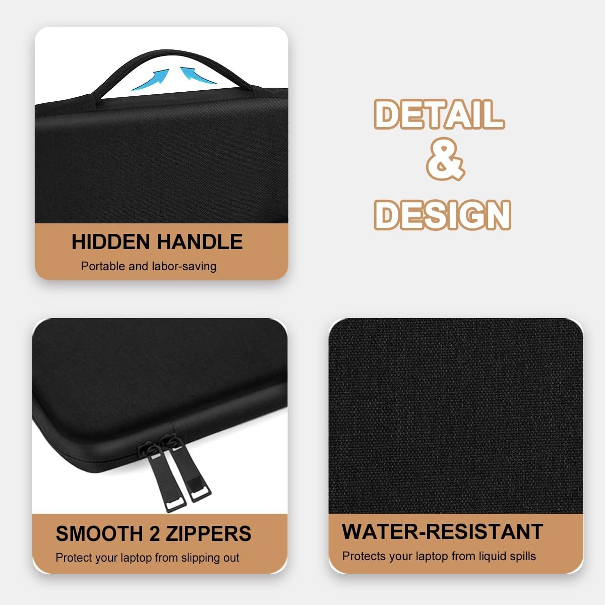 Résistant aux rayures et doublure en velours : protégez votre ordinateur portable contre les frottements et les rayures, et la couche de rembourrage en mousse de polyester peut réduire l’impact. L’intérieur lisse et le rebord intérieur autour offrent une protection complète à votre ordinateur portable lorsqu’il est à l’intérieur
