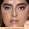 Une poudre soyeuse et légèrement pigmentée qui cuit et définit, estompe l’apparence des lignes fines et bloque le maquillage pendant 10 heures avec une finition aérographe. La formule longue durée, non comédogène, sans flashback se fond parfaitement avec la peau avec une finition mate pour contrôler l’éclat et maintenir le maquillage en place toute la journée. La poudre enrichie en vitamine E agit pour corriger délicatement la couleur et souligner les contours du visage, laissant un voile de couleur translucide sur la peau.