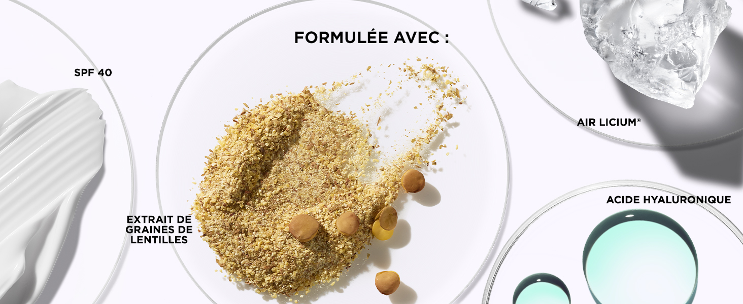 Grâce à l’extrait de graines de lentilles, notre formule offre une couvrance qui aide à affiner l’apparence des pores et à maîtriser la brillance.