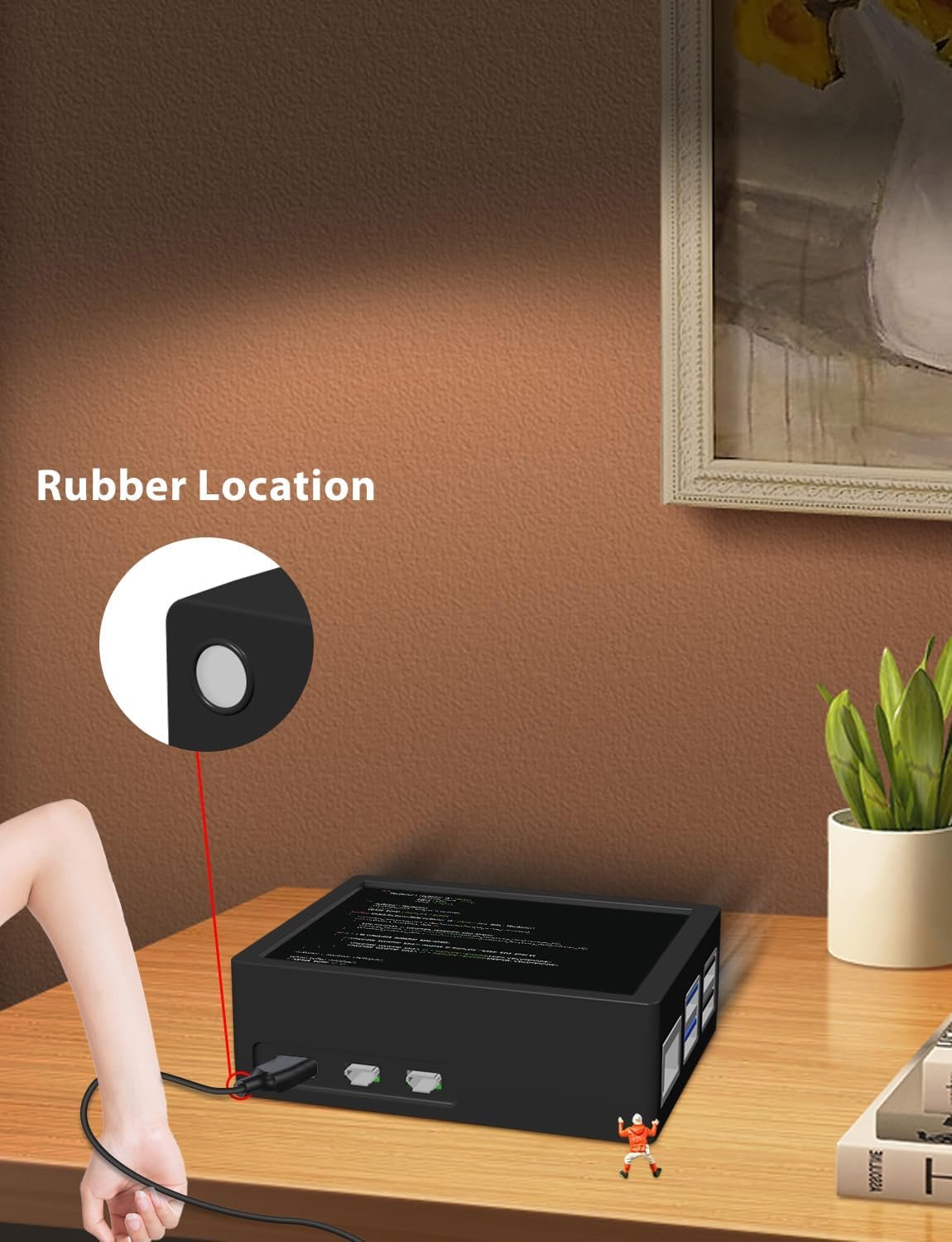 Le ventilateur intégré garantit un refroidissement efficace du Raspberry Pi, évitant la surchauffe lors d’une utilisation intensive. La coque ABS est ergonomique, tient bien en main et intègre des coins renforcés ainsi que des patins antidérapants pour une grande stabilité. Des trous d’aération optimisent la dissipation thermique, et un couvercle amovible protège l’écran lorsqu’il n’est pas utilisé. Attention à bien placer l’écran et le Raspberry Pi dans le bon sens pour permettre la fermeture correcte du boîtier ; une mauvaise installation peut endommager les composants.