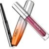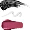 Coffret cadeau maquillage pour les yeux et les lèvres comprenant: un mascara effet volumateur, un rouge à lèvres de mat à scintillant et une ombre à paupières en stick, le tout dans un élégant coffret cadeau
