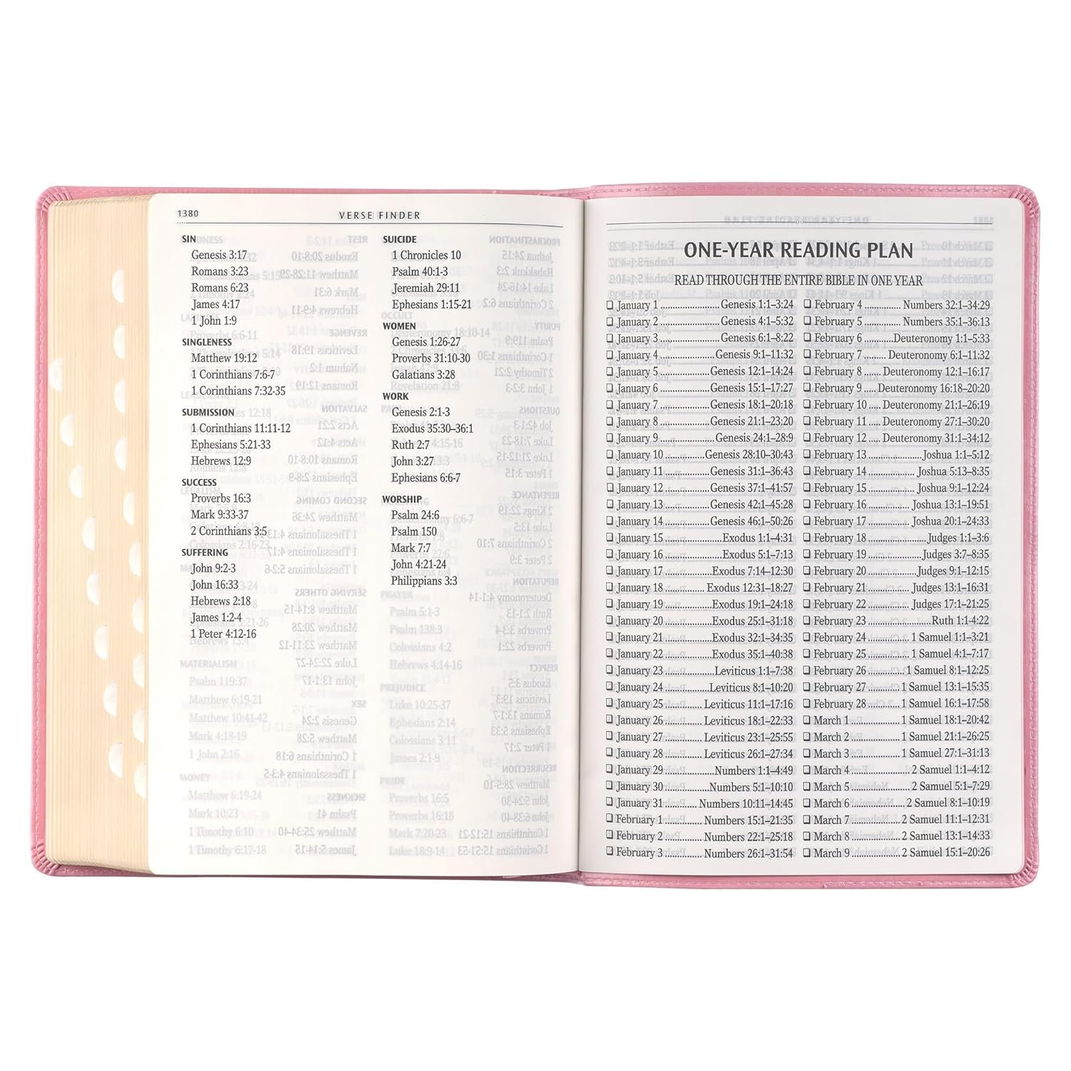 The Pink Faux Leather Giant Print Full-size King James Version Bible is the perfect Bible for the women who raised you–be it a mother, grandmother, aunt, teacher or mentor. The easy-to-read 14 point type print will ease the strain on her eyes when she settles in for her daily quiet time with the LORD. A soft blush pink cover is accented with a heat debossed frame that is embellished with intricate scrollwork. The gold foiled title and heat debossed version reference is displayed within the frame. HOLY BIBLE KING JAMES VERSION On the spine, the heat debossed imprint is placed at the top, followed by the gold foiled title that is flanked by a triple gold foiled faux spine ribbing design. Gilt-edged pages add extra luster to the feminine design. The flexcover opens completely flat without damaging the spine. A soft pink satin ribbon marker and thumb-indexing tabs offer an easy way to navigate your Bible. The easy-to-read 14 point type allows you to read your Bible without eye strain. The Giant Print Bible can also be read from a fair distance–no need to hold it up close. Essential study resources include double-column formatting, a thematic Scripture verse finder, concordance, topical verse finder, the words of Christ are printed in red ink and a one-year Bible reading plan. If you are looking for a unique gift for Mother’s Day to honor the woman who raised you, consider the Pink Faux Leather Giant Print Full-size King James Version Bible. Simple Framed Design Pink Faux Leather Cover Flexcover Gold Foiled Title and Accents Classic King James Version Thumb-indexing Tabs Satin Ribbon Marker Gilt-edged Pages Double Column Format Words of Christ in Red Thematic Scripture Verse Finder One-year Bible Reading Plan Lay-flat Binding 14 Point Type Size: 9.65 x 6.5 x 1.5 (245 x 165 x 38 mm)