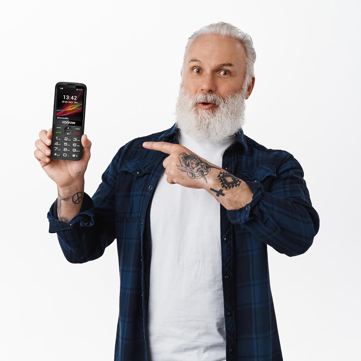 Konrow Senior 280 – Grosses Touches – Très Facile d’Utilisation – Écran 2,8” Lisibilité Optimale – Double Sim – Station de Charge – Bouton SOS – Appareil Photo et Bluetooth – 32Mo RAM – Noir