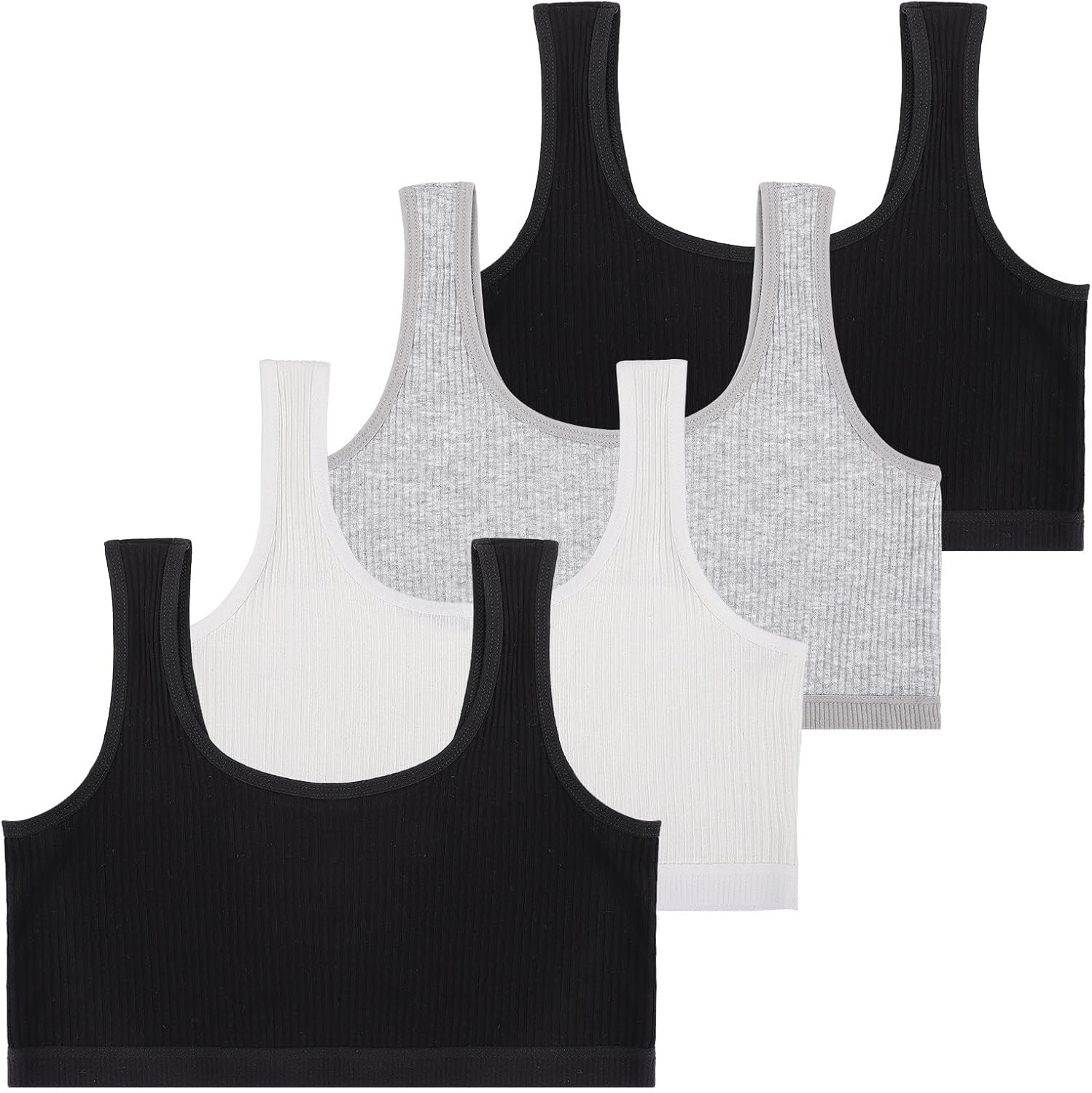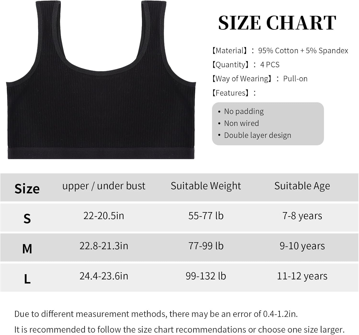 Lancry Lot de 4 soutiens-gorge pour filles, en coton doux pour filles de 7 à 12 ans, soutien-gorge d’entraînement sans fil non rembourré pour filles, enfants, adolescentes