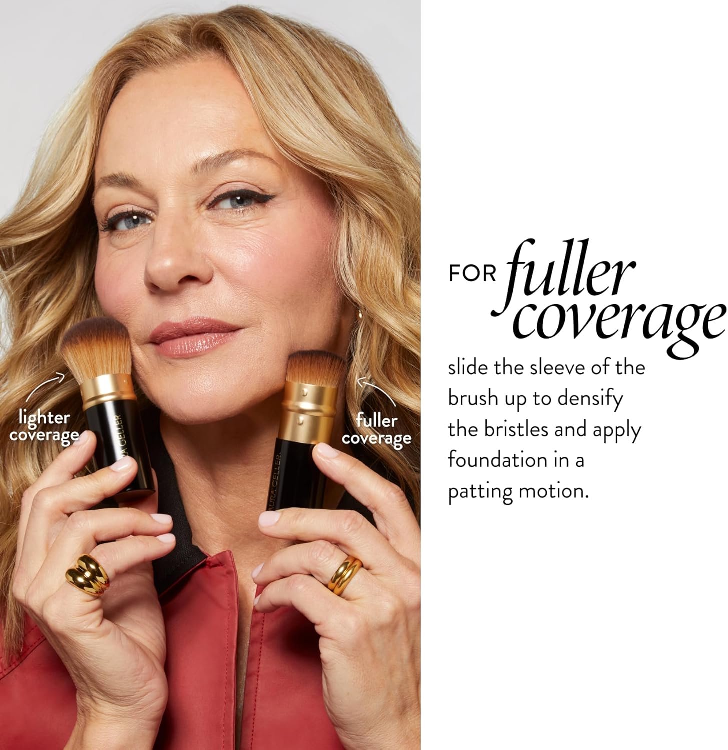 Pour une couverture légère, tournez notre pinceau kabuki rétractable – avec le manchon poussé tout le long vers le bas, sur la poudre puis sur le age. Mélangez vers l’extérieur et vers le haut. Répétez l’opération pour augmenter la couver Pour une couverture moyenne, appliquez avec notre manchon de protection rétractable pour brosse kabuki tiré presque tout le haut. Tourbillonner sur la poudre puis frotter sur le visage. Mélangez vers l’extérieur et vers le haut. Répétez l’opération pour augmenter la couver