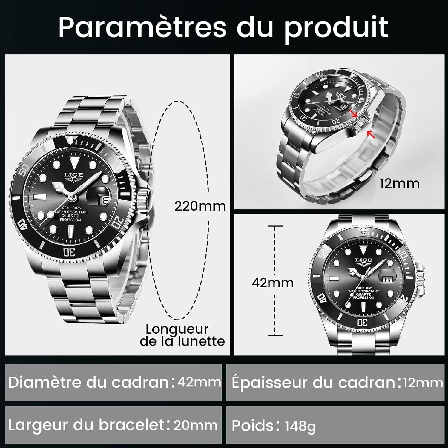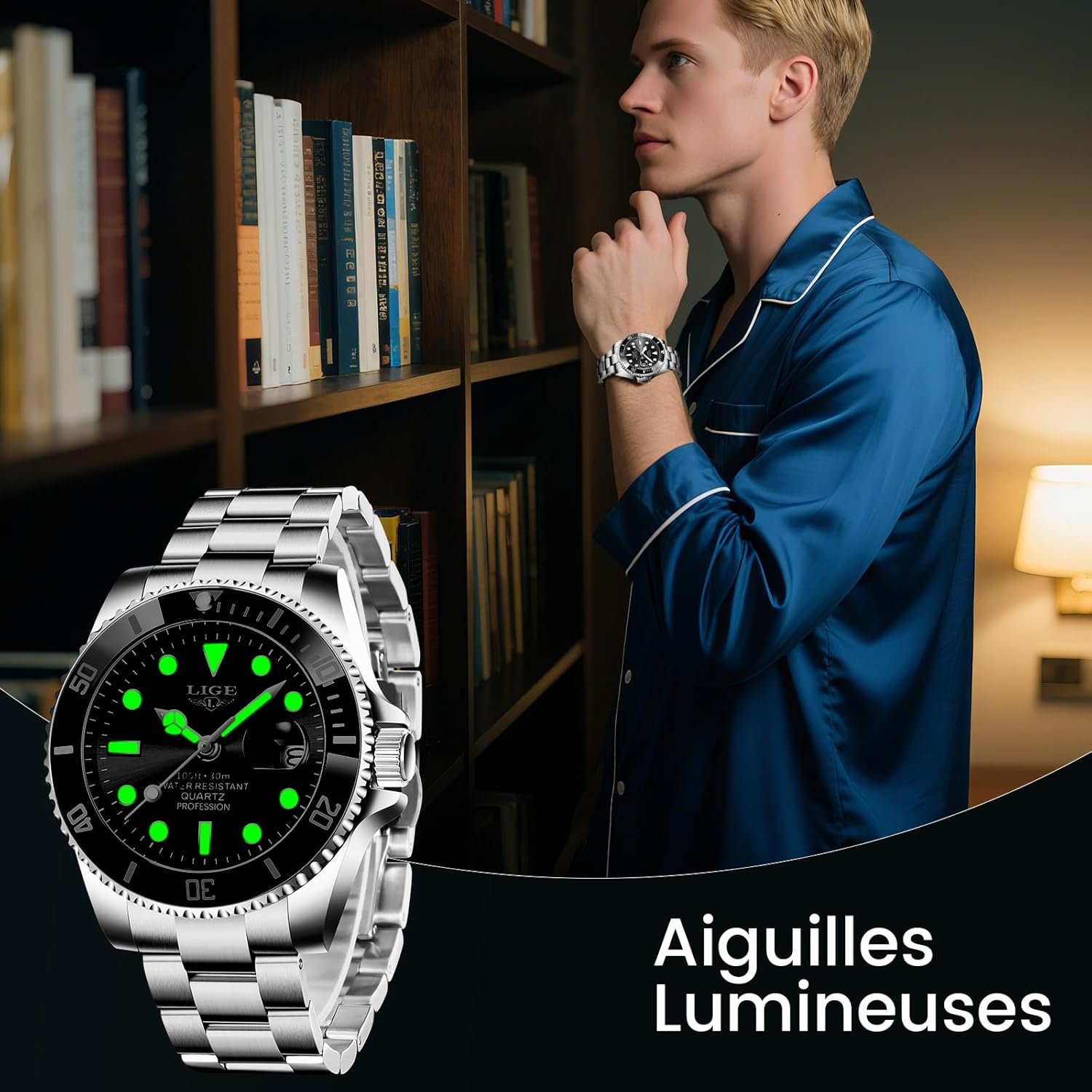 Découvrez l’élégance et la robustesse avec la montre homme LIGE, une création distinctive réunissant le raffinement classique et la modernité. Conçue pour l’homme moderne, elle associe un boîtier en acier inoxydable haut de gamme à un mouvement quartz analogique pour garantir précision et durabilité au quotidien. Son cadran soigné affiche des aiguilles lumineuses et une fonction date, ce qui la rend idéale aussi bien pour les journées professionnelles que pour les soirées décontractées. Étanche à 3 ATM (30 mètres), cette montre résiste facilement aux éclaboussures ou à la pluie, offrant une véritable tranquillité d’esprit lors de vos déplacements. LIGE, forte de 13 ans d’expérience en horlogerie, incarne la philosophie du « client d’abord », alliant esthétique intemporelle, légèreté et confort optimal au poignet. Les finitions minutieuses et le design élégant font de ce modèle un accessoire polyvalent, adapté aux hommes qui aiment allier simplicité et distinction dans leur style quotidien. C’est aussi un cadeau idéal, livré avec pile incluse, convenant parfaitement à toutes les occasions et soulignant un sens du détail et du bon goût.