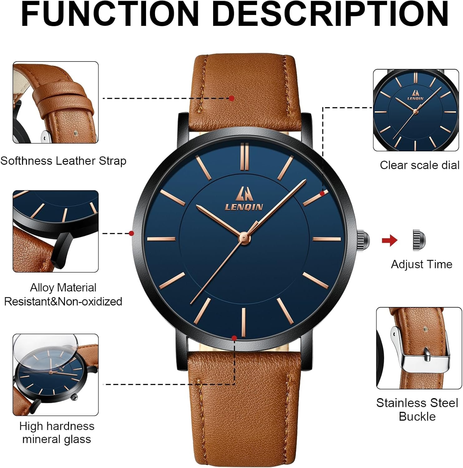 - Bracelet Cuir Confortable : Portez votre montre sans gêne, même toute la journée.