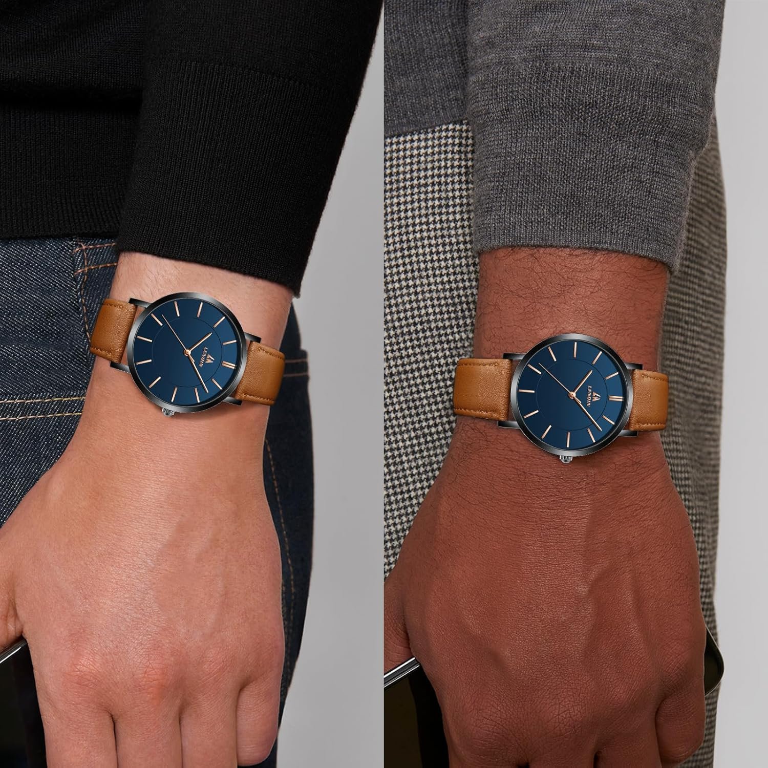 LN LENQIN Montres Hommes Montres pour Hommes Montre Analogique à Quartz 30M Waterproof Montres Poignets Hommes Montre Fashion Business Homme Designer Bracelet Cuir