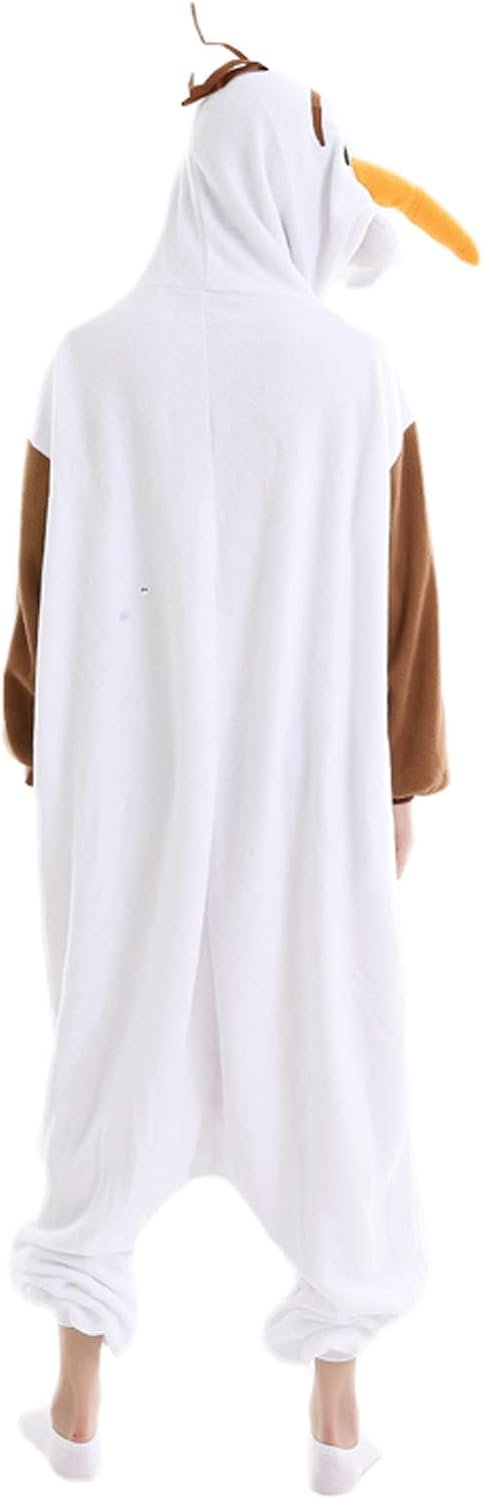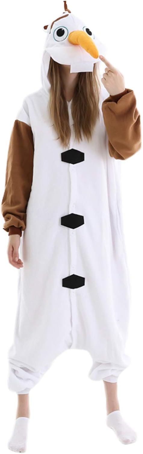 Ce costume Olaf en combinaison est idéal pour les adultes et les adolescents qui veulent se déguiser pour Halloween ou pour une soirée pyjama. Il est fait de polyester polaire et comporte une fermeture à bouton pour faciliter le port et le déshabillage. Le design ample permet de le porter confortablement sur des vêtements ou des vestes existants.