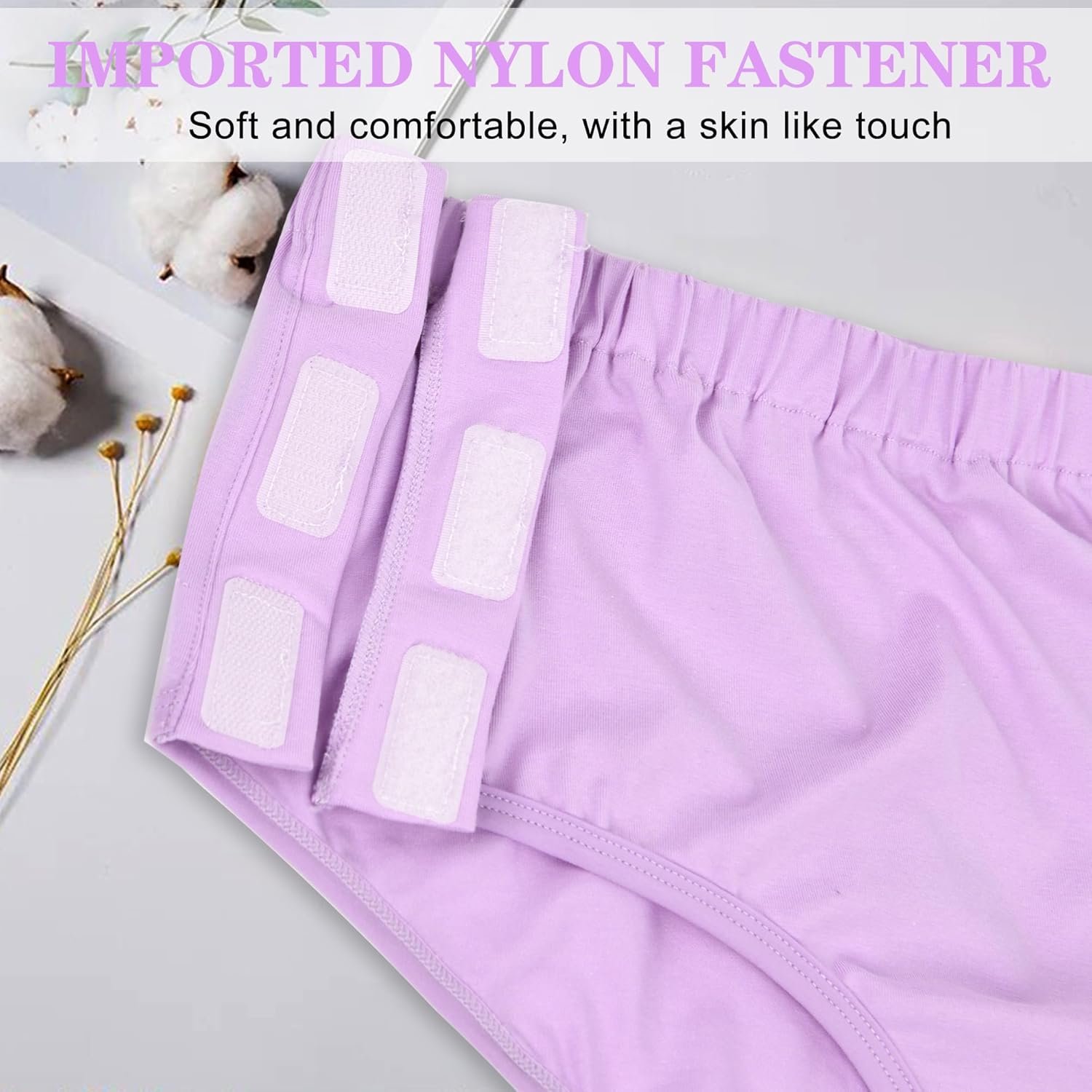 Ce slip confortable est fabriqué à partir de coton de haute qualité (95%) et d’élasthanne (5%). Il est disponible en différentes tailles (L, XL, XXL, XXXL) et couleurs (rose, violet). Le produit se compose de deux slips de couleurs différentes, équipés d’une fermeture magnétique facilitant leur mise et leur enlève.