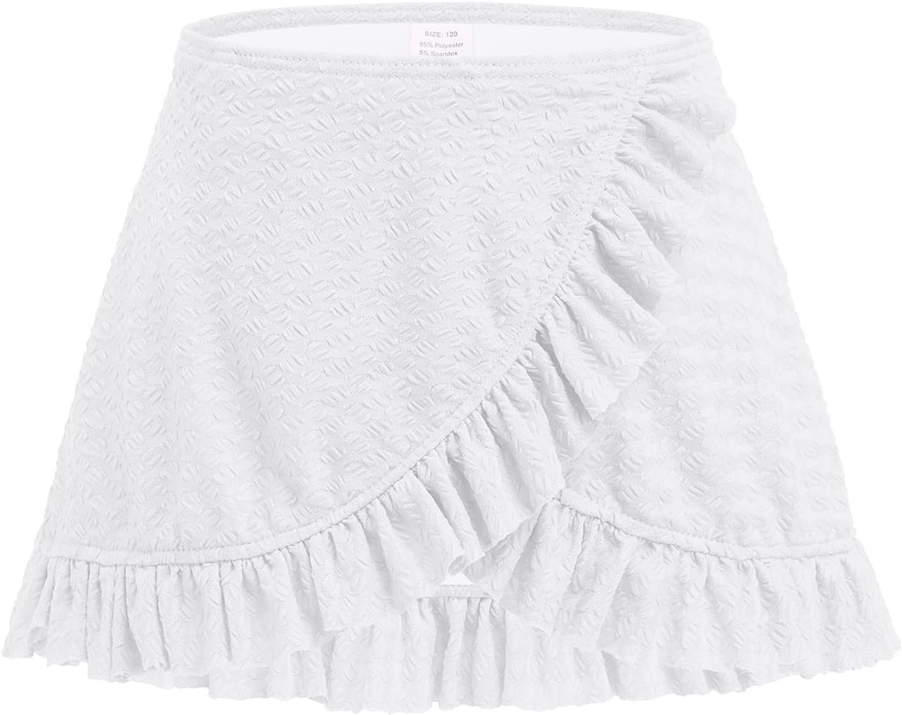 Arshiner Ensembles bikini fille : Maillot de bain trois pièces uni avec jupe