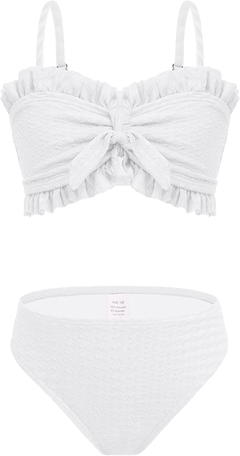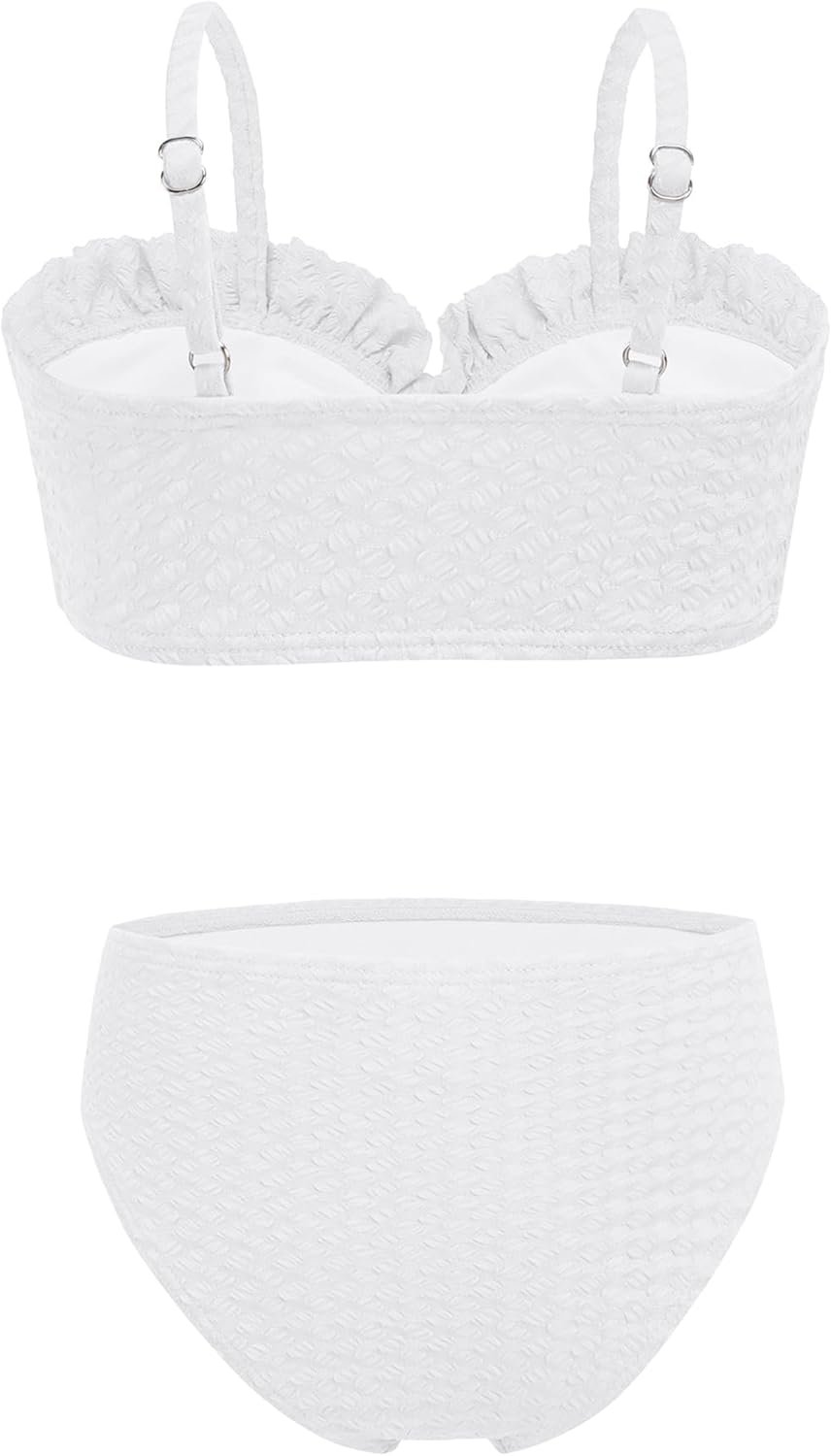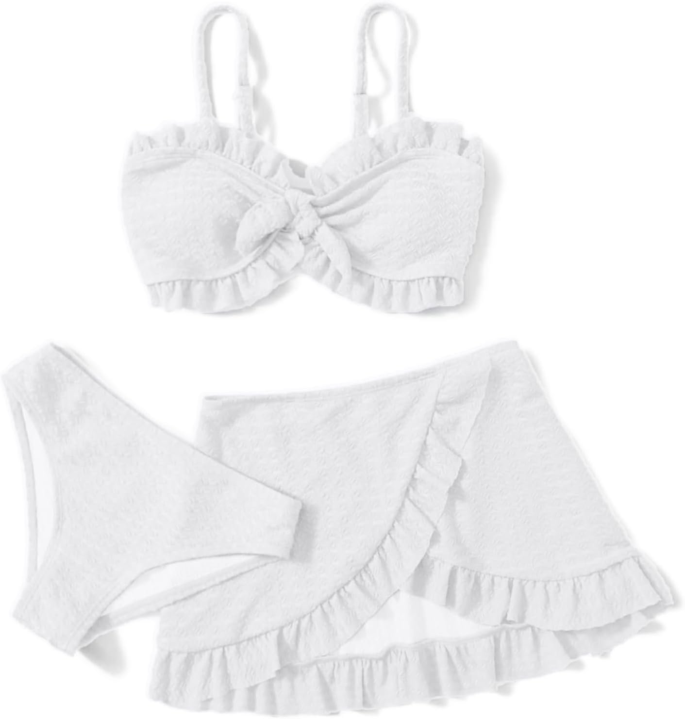 Maillot de Bain 3 pièces pour Fille avec Jupe torsadée sur Le Devant, Haut de Bikini, Slip de Bain de Couleur Unie et Jupe Cache-Maillot de Bain pour la Plage et la Piscine, Bikinis pour 5 à 14 Ans