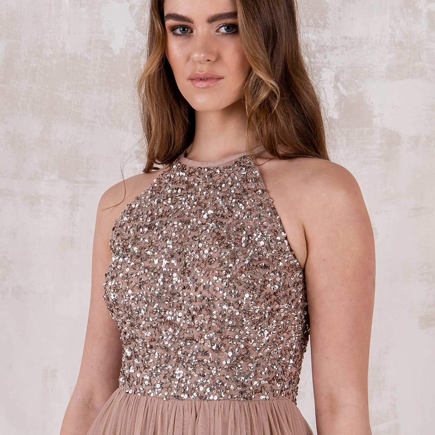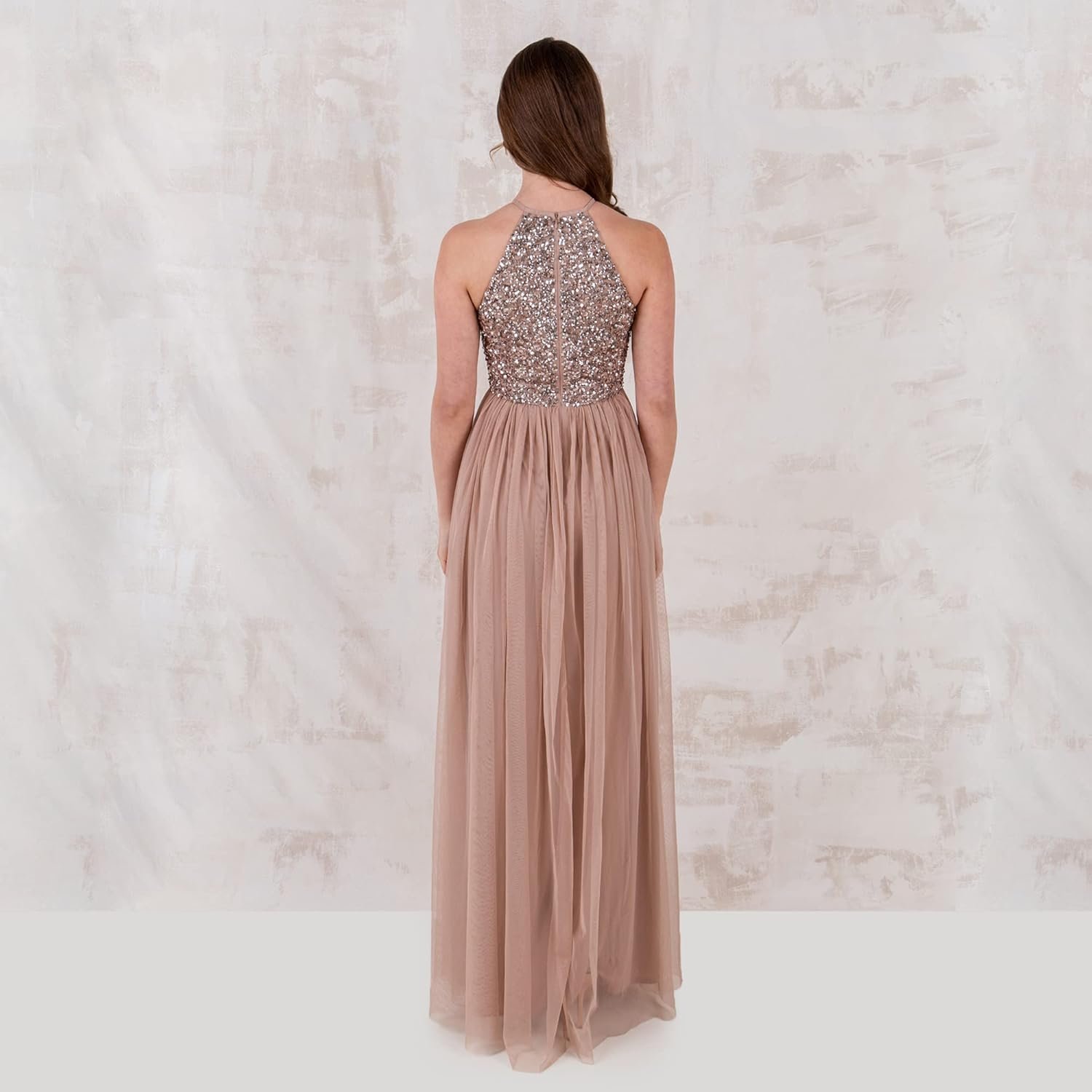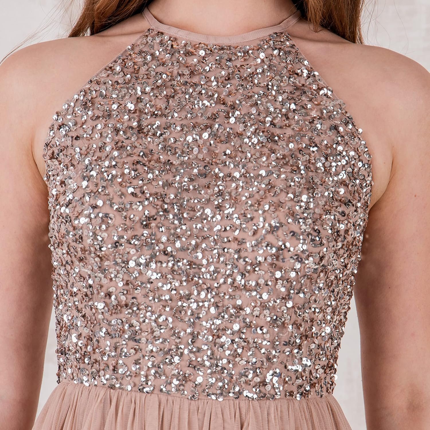 Cette robe de soirée maxi longue lys vert est parfaite pour les occasions spéciales. Le corsage ajusté cousu à la main avec des paillettes scintillantes sur le dos nu et les bretelles fines contraste avec la jupe en tulle romantique. La robe convient aux demoiselles d’honneur, aux bals ou aux soirées, et peut être associée à des talons assortis et une pochette chatoyante.