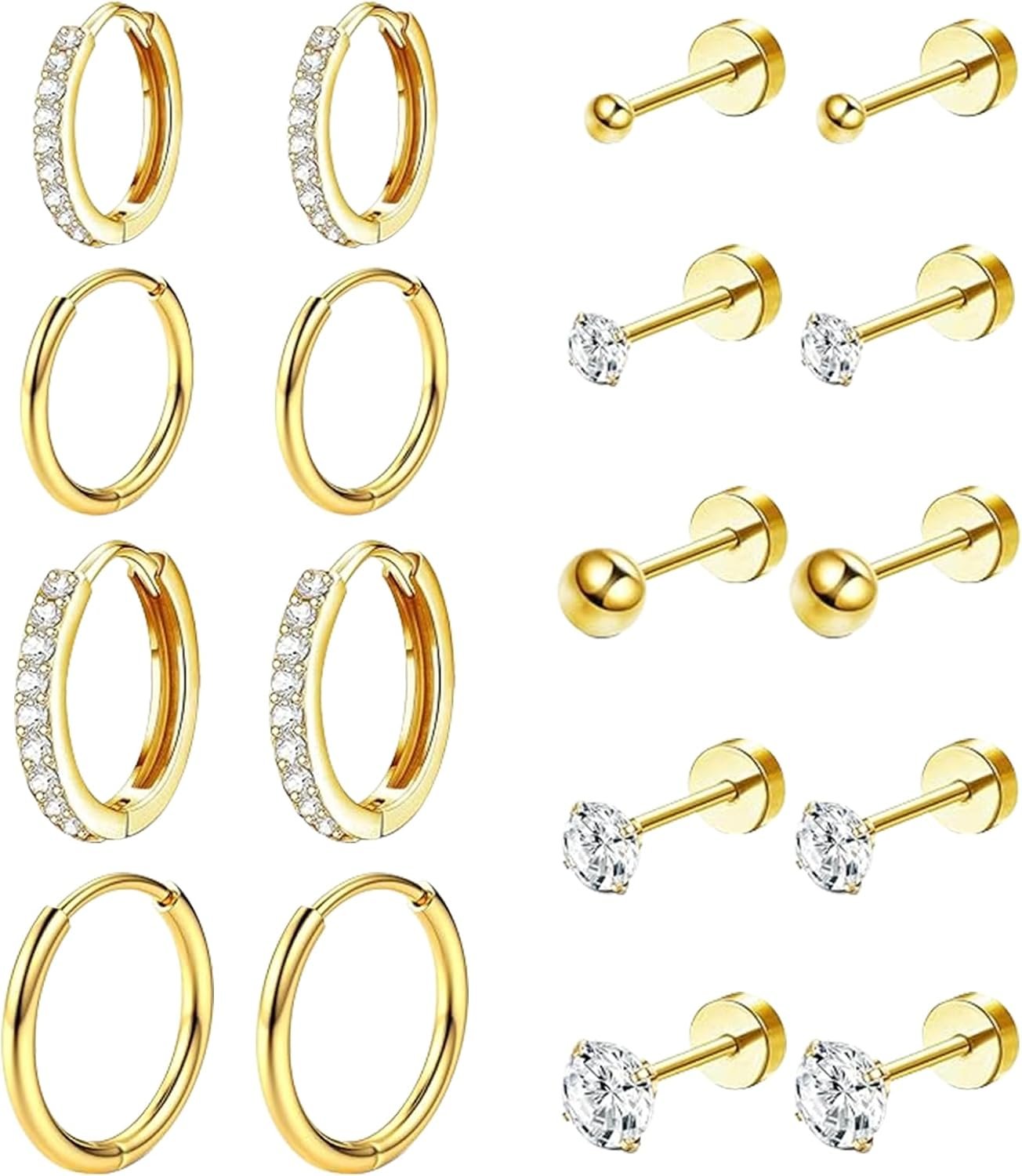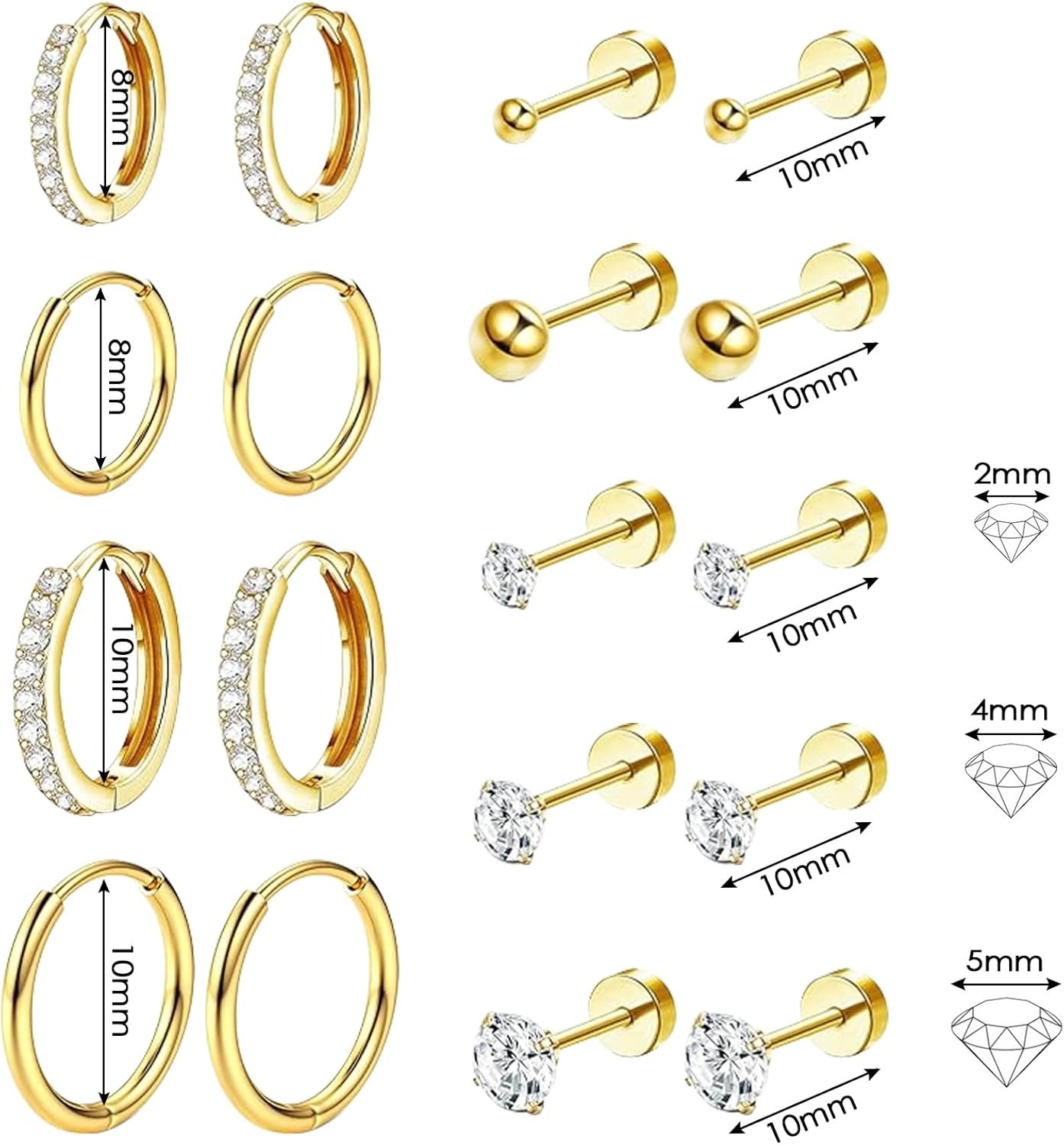 Rewrite Set de boucles d’oreilles Matériau : acier inoxydable Contenu : 4 paires de boucles d’oreilles, 5 paires de clous d’oreilles Couleur : or