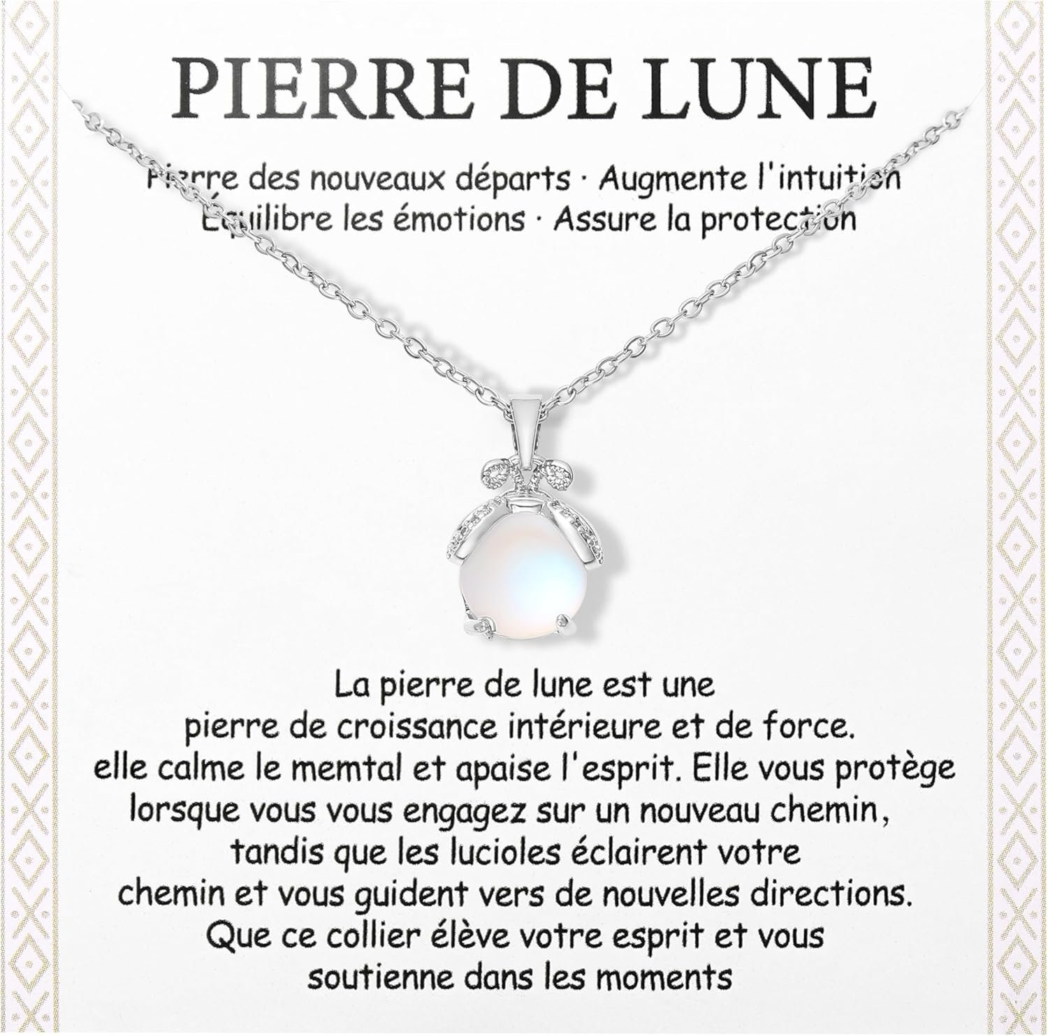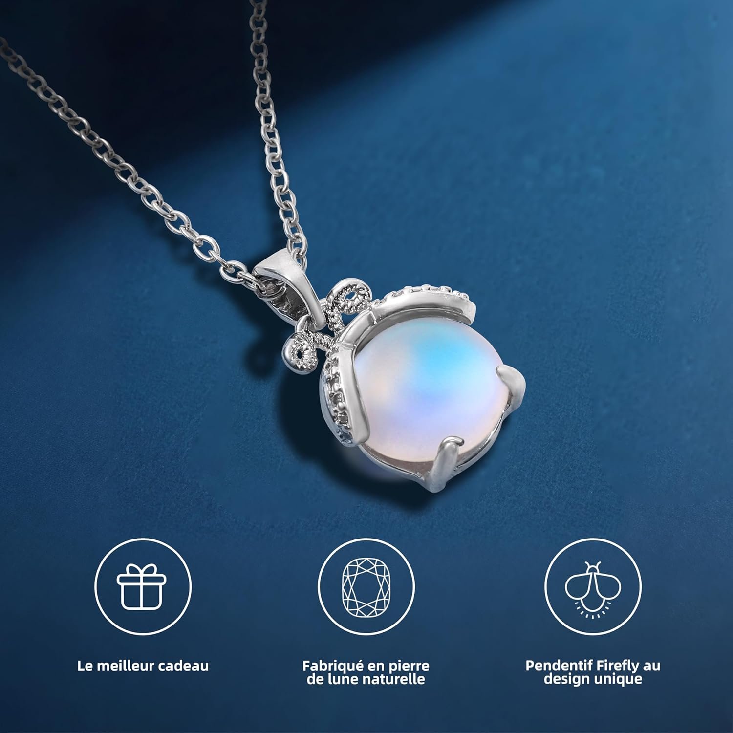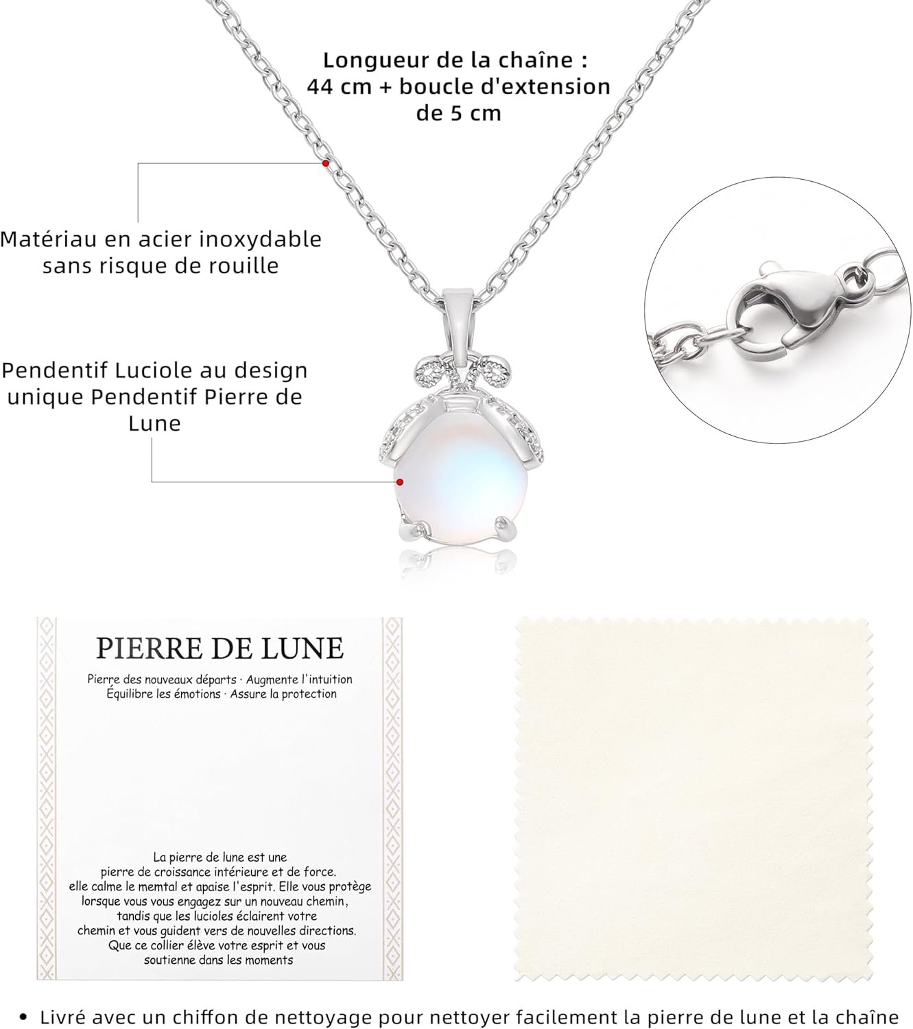 Caractéristiques du produit : Ce collier en pierre de lune est un point culminant de toute occasion avec son design et son symbolisme uniques. Le pendentif du collier a la forme d’une luciole exquise, qui peut montrer un éclat différent sous différentes lumières, comme si les lucioles dansaient dans le ciel nocturne. En tant que pierre précieuse, la pierre de lune symbolise la croissance intérieure et la force, inspirant l’intuition et la créativité du porteur tout en apportant chance à la vie.
