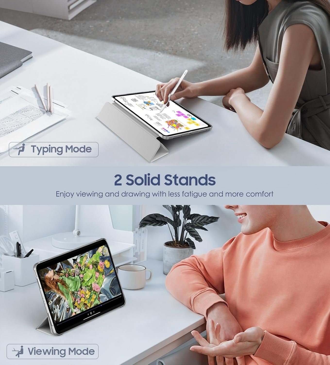 SUPPORT PLIABLE – Le couvercle avant iPad Air 11 pouces 2025/ iPad Air 11 pouces 2024 /iPad Air 5ème/4ème génération peut être plié comme un support, ce qui vous permet de choisir une position et un angle de vision plus confortable pour frapper ou regarder des vidéos , des SMS, des jeux ou l’apprentissage etc.