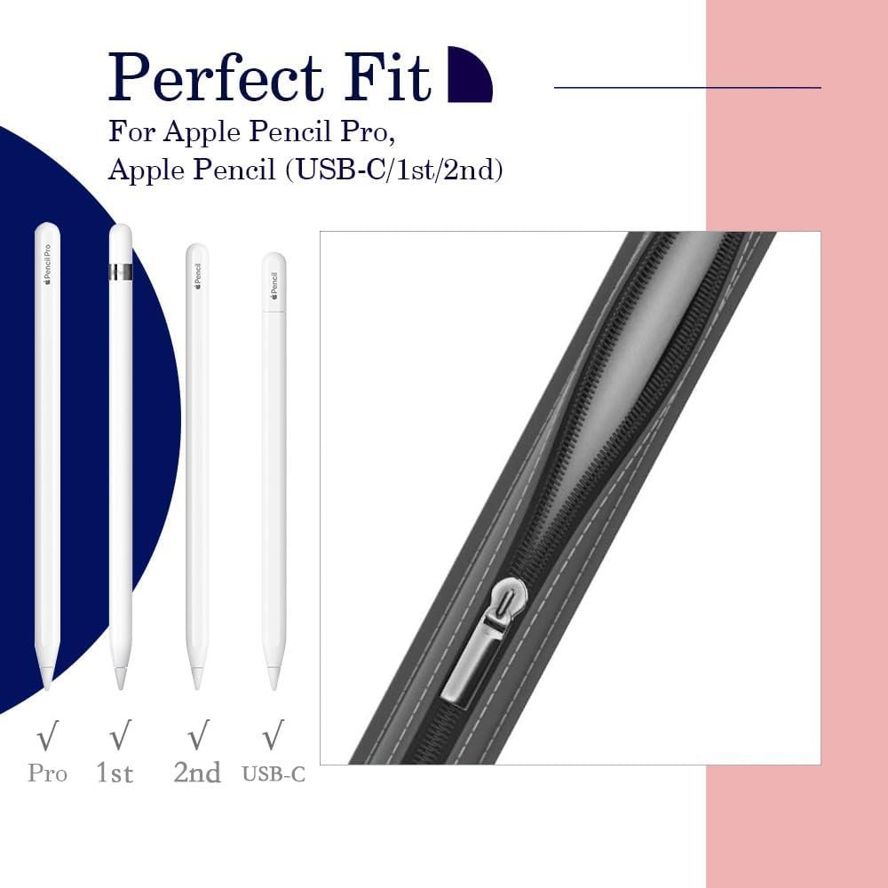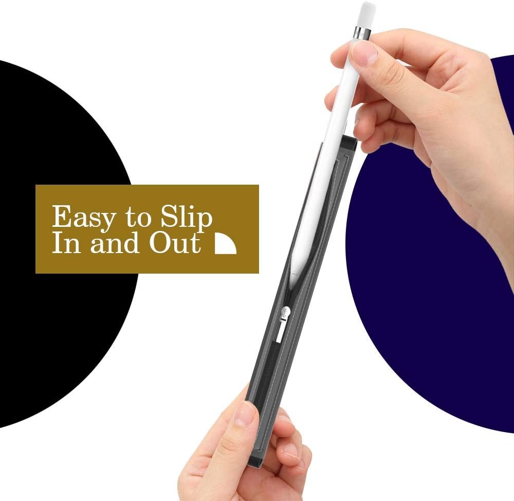 L’étui dispose d’une fermeture à glissière en métal pour un stockage sécurisé et d’un sangle élastique rétractable, permettant de l’attacher à votre tablette. Cela vous permet de transporter votre Apple Pencil en toute sécurité et de le garder propre.