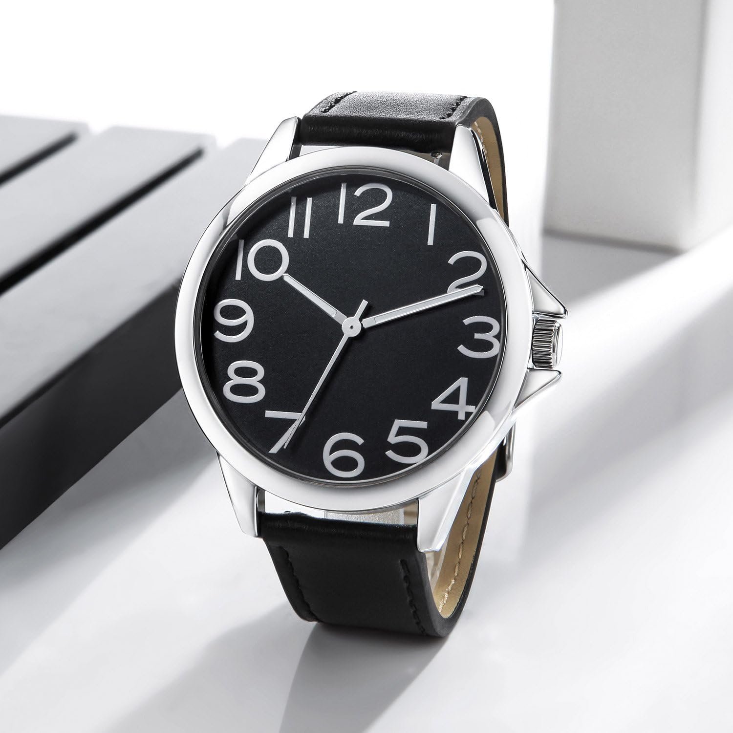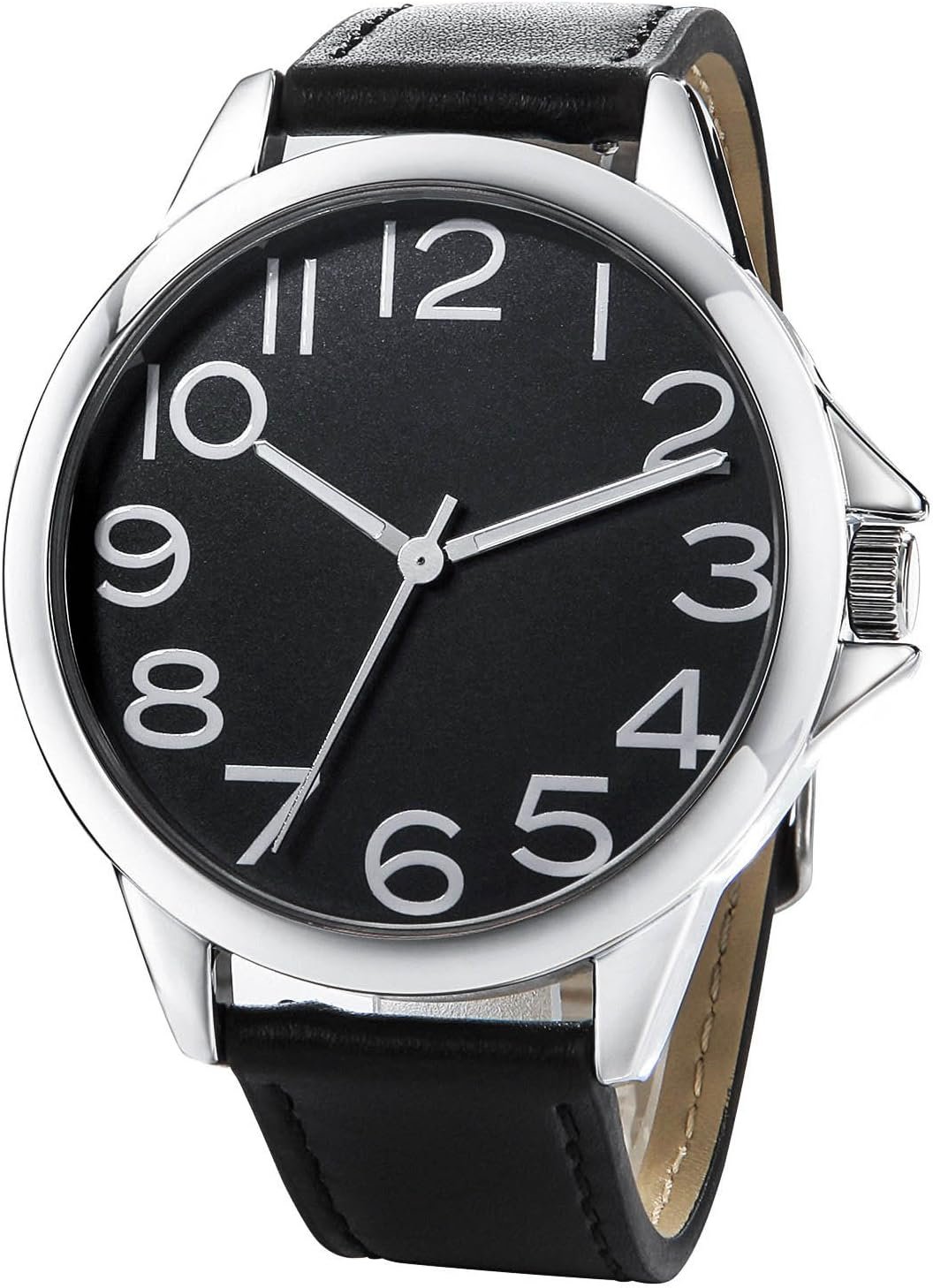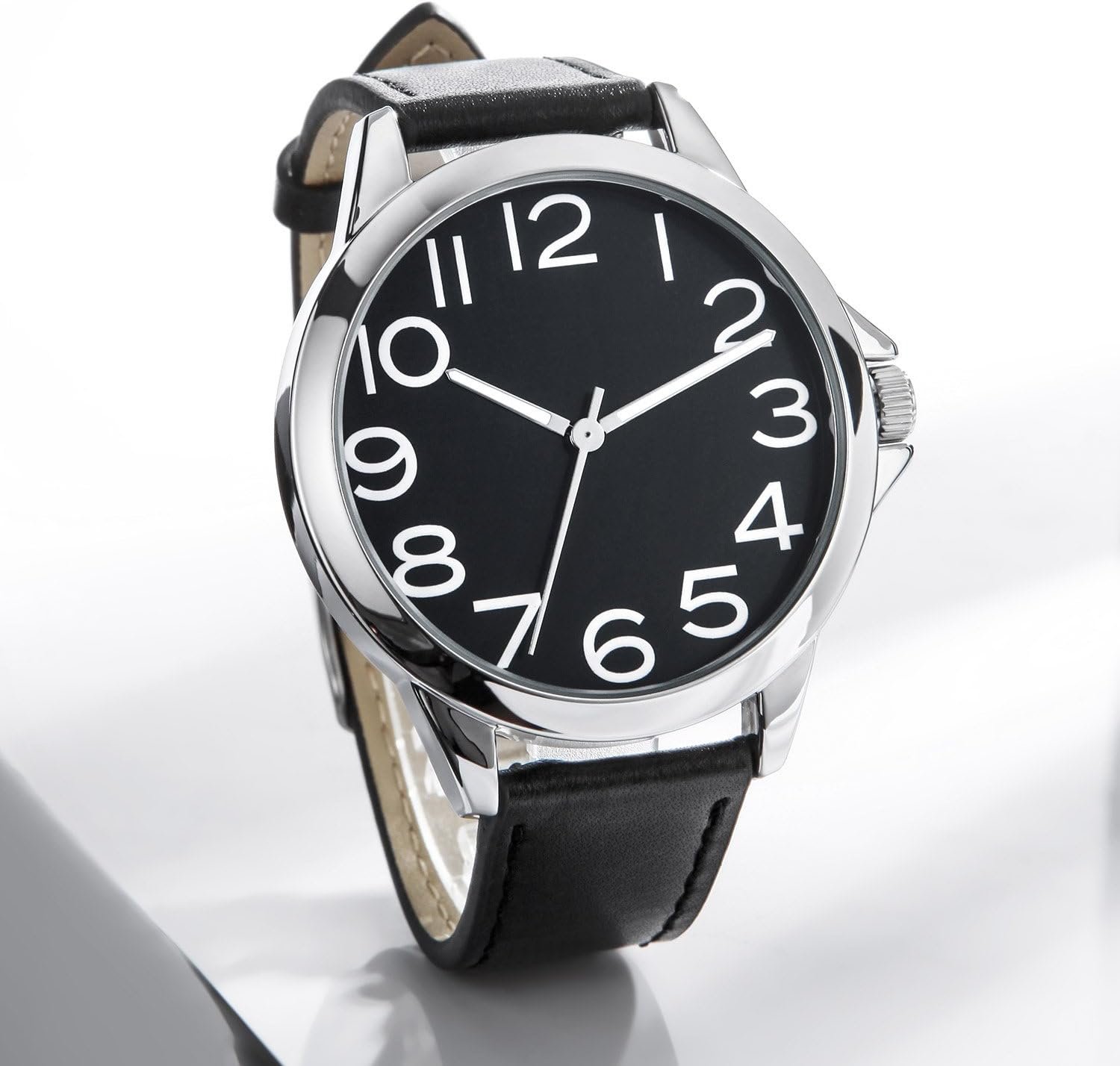 Montre Homme pour Grand Cadran Numérique en Cuir étanche Chiffres Arabes Classique Montre à Quartz pour Homme