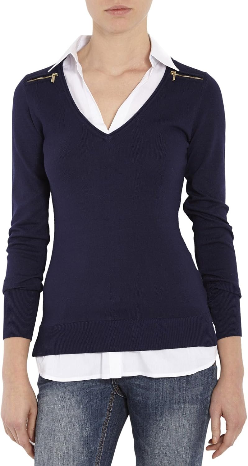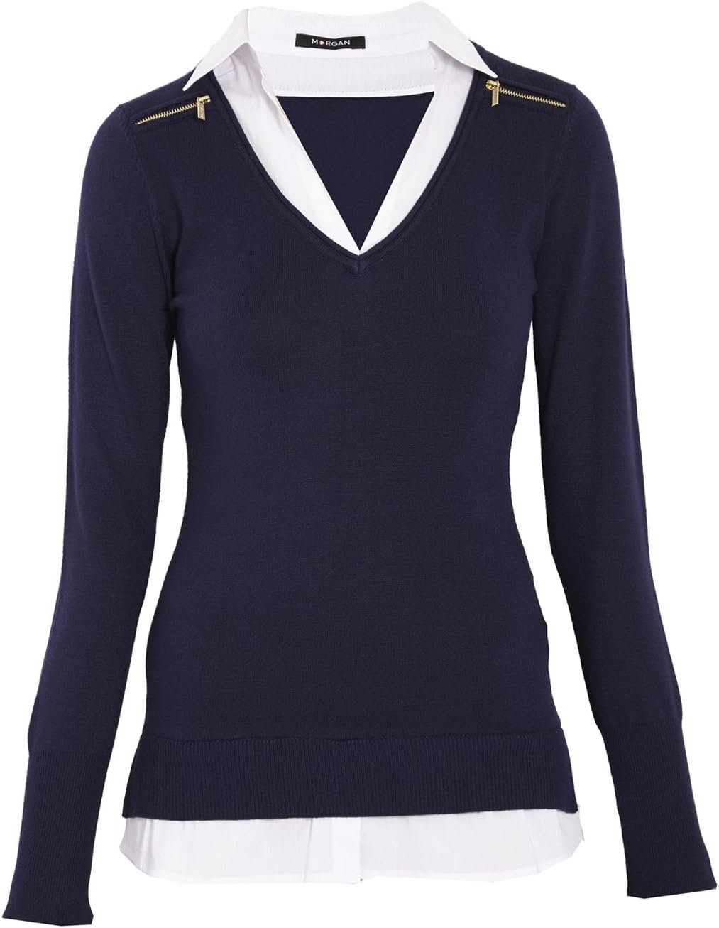 Ce pull féminin est conçu avec des manches longues et un col superposé, offrant un look élégant. La coupe droite et le tricotage en côte à la taille et aux poignets ajoutent une touche de raffinement. Le col à effet de superposition, avec un col en V et un col à revers, donne un effet chemisier sophistiqué. Ce pull en fine maille est idéal pour les femmes qui cherchent un vêtement confortable et stylé. Avec une note de 4,4 étoiles sur 5 et plus de 90 évaluations, il est clair que les clientes apprécient ce produit. Le fabricant de ce pull est Morgan. Il est classé parmi les meilleures ventes sur Amazon, ce qui témoigne de sa popularité.
