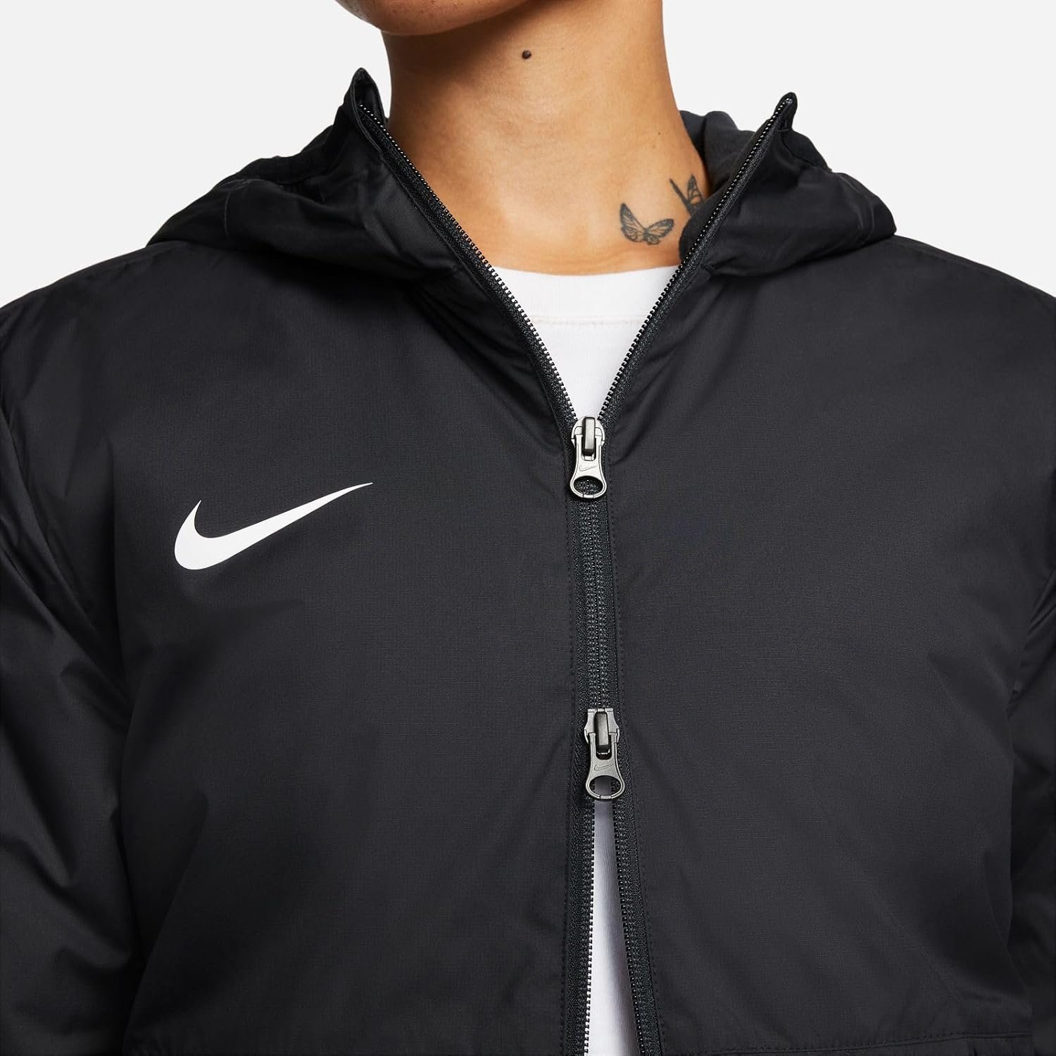 Cette veste de football pour femme est conçue pour vous protéger des intempéries. Le revêtement résistant à l’eau et la finition déperlante vous gardent au sec sous la pluie. L’isolation légère et la longueur allongée vous maintiennent au chaud pendant les périodes froides.